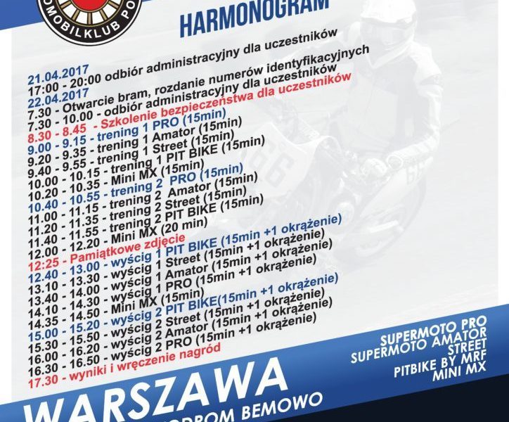 Już w ten weekend, 22 Kwietnia, na Autodromie Bemowo, na rozgrzewce przed rozpoczęciem sezonu wyścigowego spotka się polska czołówka zawodników supermoto.