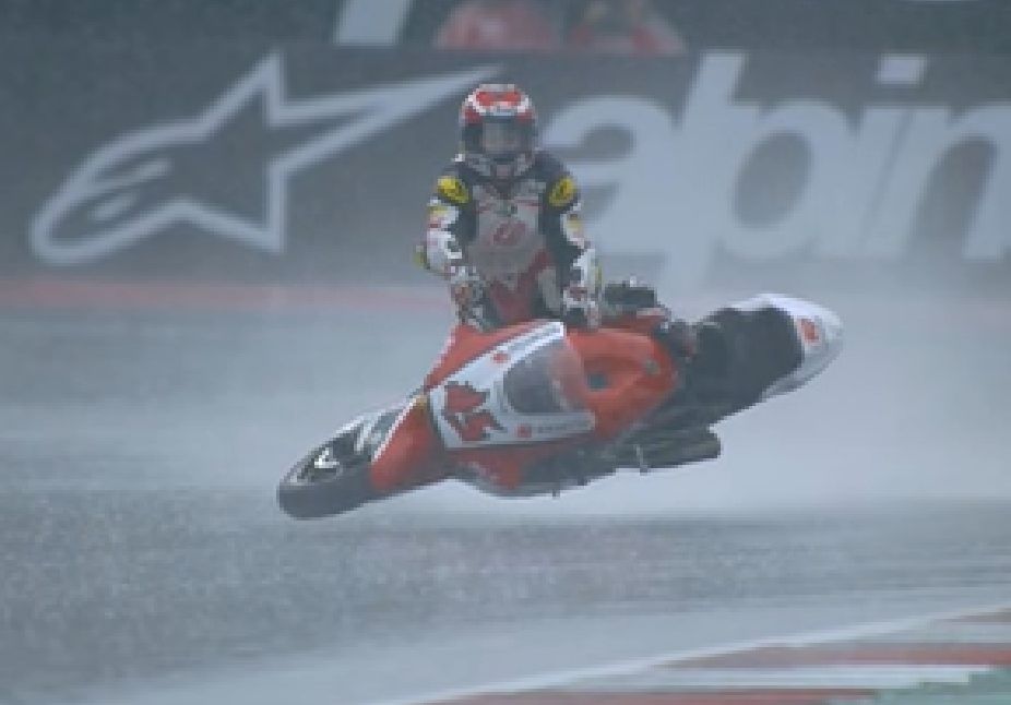 Do całego zdarzenia doszło w trakcie czwartkowych treningów podczas GP Austrii. Po wyjściu z zakręty, zawodnik stracił przyczepność tylnego koła, które uciekło, a następnie nastąpiło to czego nienawidzą wszyscy motocykliści: potworny highside, który wysadził Japończyka z siodła. Finalnie Tetsuta wylądował na motocyklu i przez chwilę surfował na swoim sprzęcie. Całość wygląda… no właśnie, sami zobaczcie!