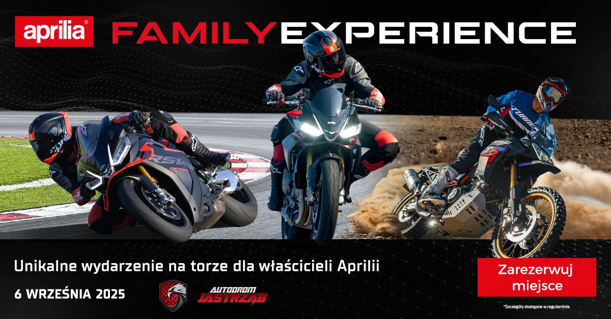 Impreza co prawda przewidziana jest dla posiadaczy motocykli z Noale, ale jeśli chodzi Ci po głowie zakup „Apki”, to masz dodatkowy argument za tym przemawiający. Przy zakupie nowego motocykla z autoryzowanej dystrybucji, bilet na Aprilia Family Experience 2025 dostaniesz za 1 zł. Oferta oczywiście obowiązuje do wyczerpania miejsc.