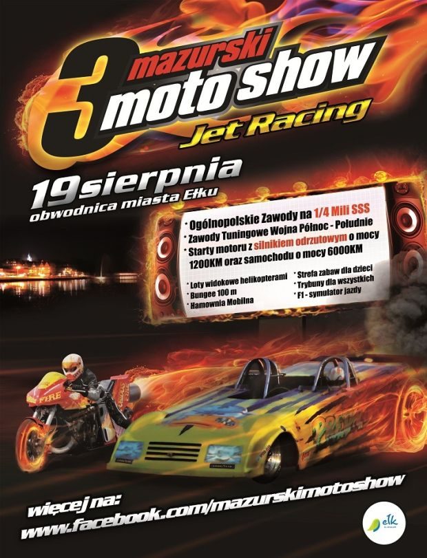 19 sierpnia w Ełku odbędzie się III Mazurski Moto Show Jet Racing, jedyne takie wydarzenie w północno-wschodniej Polsce.
