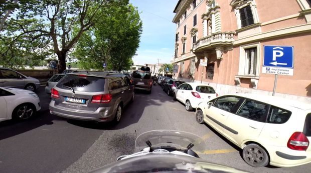 Skutery to chyba największa zmora Rzymu, mówię to z czystym sumieniem, choć to też jednoślady, wjeżdżają na chodniki, trąbiąc na przechodniów, by zeszli im z drogi, torując sobie w ten sposób drogę i parkując bezpośrednio pod sklepem. I wszyscy się z tym godzą. O to, ze ktoś wychodzi na kawę, po zaparkowaniu na środku ulicy, nikt z kierowców się tu nie burzy, po prostu omijają takie auto, jak przeszkodę.