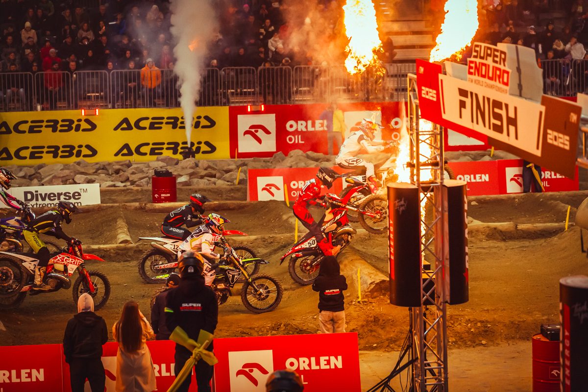 Przypominam, że za całą serię SuperEnduro odpowiedzialna jest polska agencja SportUp. Dodatkowo partnerem napędzającym (swoją drogą fajna nazwa) został Orlen Oil. Polska marka olejów (w tym motocyklowych) wspomaga organizację, ale przede wszystkim wzięła patronat nad Orlen Oil Kids Race. Najmłodszych uczestników tego wieczoru wystartował Bartosz Zmarzlik, który przyznał, że spoglądając na emocje rodziców związane z wyścigiem, sam się wzruszył. Wyścig pokazowy towarzyszy polskim rundom od wielu lat i to dzięki zmaganiom najmłodszych powstała kategoria Youth. Od sezonu 2025 zawodnicy w wieku 14-18 lat mogą startować na dwusuwowych motocyklach o poj. 125 ccm w kategorii zarejestrowanej przez FIM jako Mistrzostwa Świata. To ogromny krok do przodu dla wszystkich młodych zawodników.