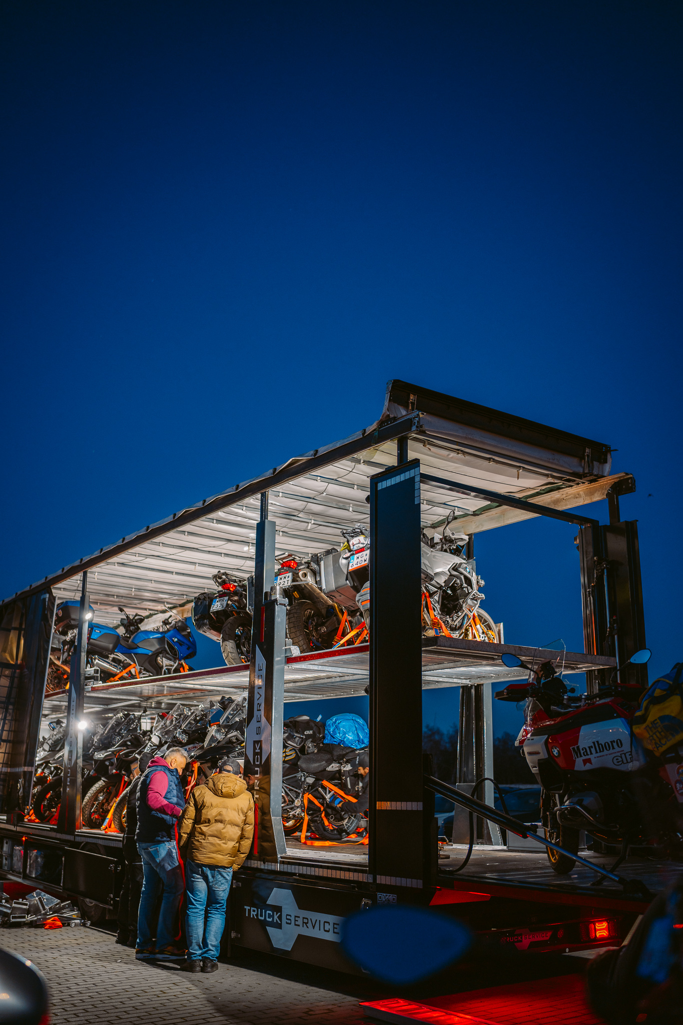 Lata doświadczeń w branży turystyki motocyklowej pozwoliły specjalistom z ADV.PL zaprojektować od podstaw zabudowę, która jest stworzona w jednym celu – by zapewnić bezpieczny transport jednośladów. Naczepa ma dwa ruchome pokłady do załadunku motocykli o różnej wysokości. Możliwość wjazdu i wyjazdu z kilku stron oraz winda ułatwiają manewrowanie i zwiększają bezpieczeństwo.