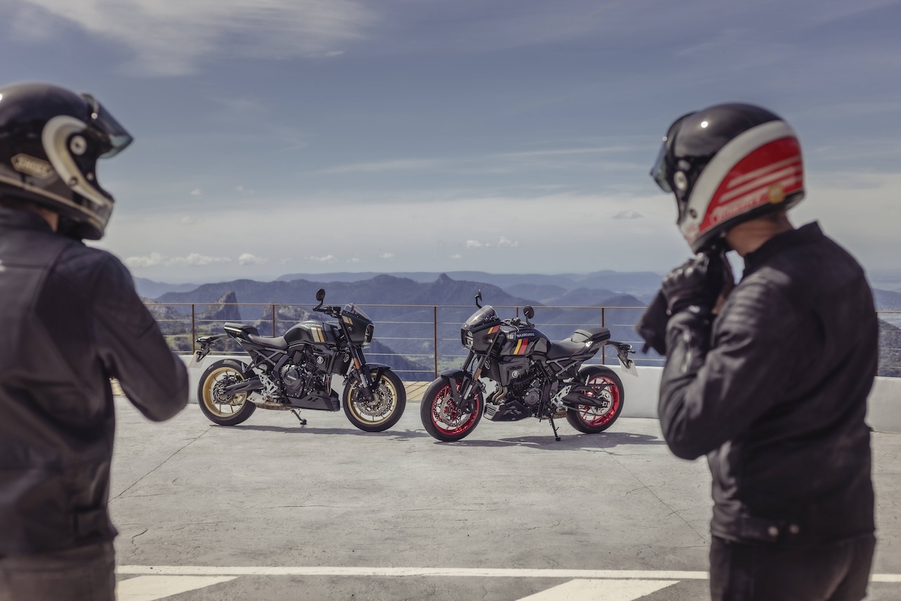 Pierwszy z nich to elegancki naked zbudowany w stylu retro. Oczywiście klimat lat 70. idzie w parze z najnowszymi technologiami. Na przykład – mamy klasyczną, okrągłą przednią lampę, ale wykonano ją w technologii LED i wyposażono w doświetlanie zakrętów. Znakiem jest także 5-calowy wyświetlacz TFT, czy quick-shifter.