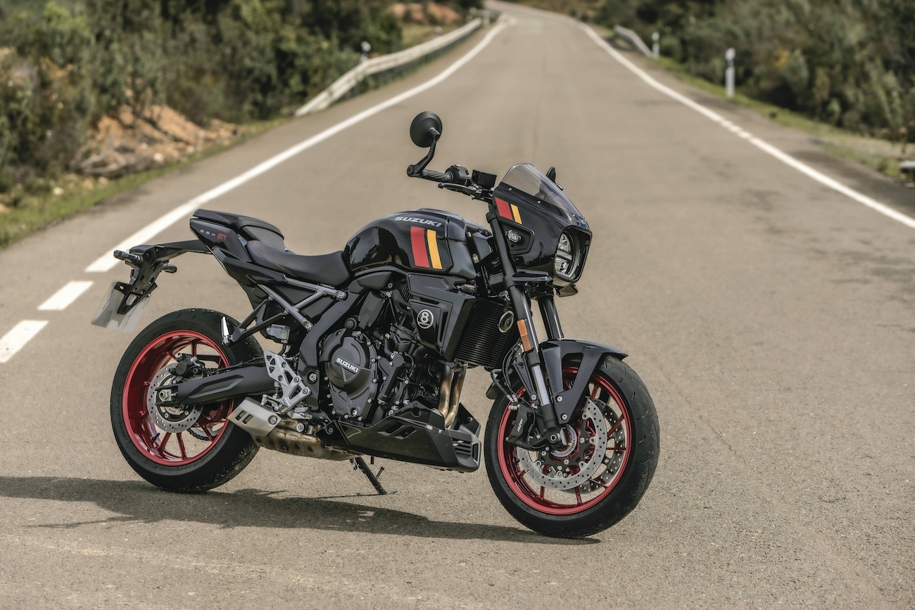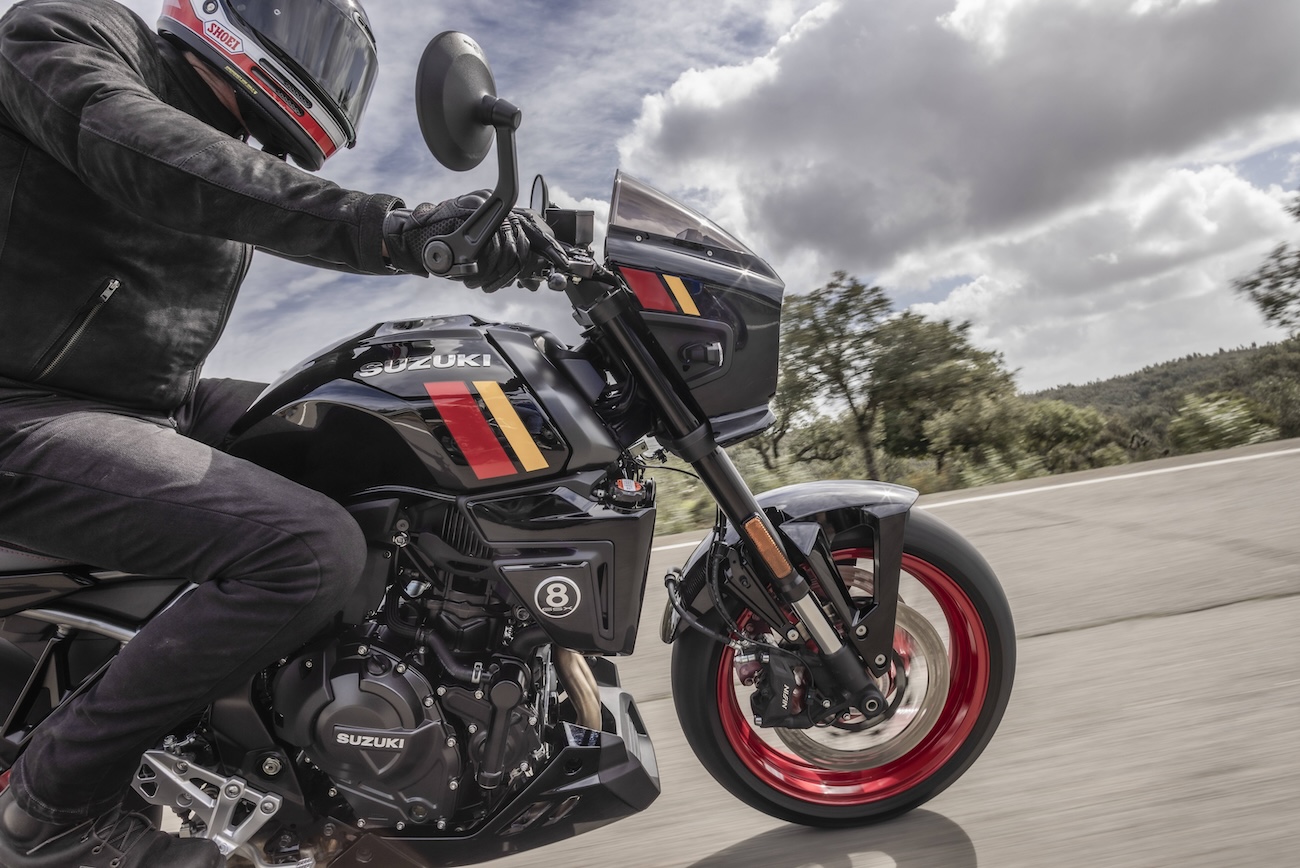 Dla wielbicieli stylu retro podanego w sportowym wydaniu bardzo ciekawy może być model GSX-8TT. On chyba najlepiej oddaje klimat pierwszych Suzuki GSX z lat osiemdziesiątych. Podobnie jak tamte, ma zadziorną linię podkreśloną przez pasującą do stylu z epoki niską owiewkę i lakierowanie z dwoma szerokimi pasami na zbiorniku. Każdy element tego motocykla jest przemyślany, począwszy od umieszczonych na końcówkach kierownicy lusterek, poprzez złote golenie przedniego zawieszenia Kayaby, a na kompaktowych siedzeniach kierowcy i pasażera kończąc.