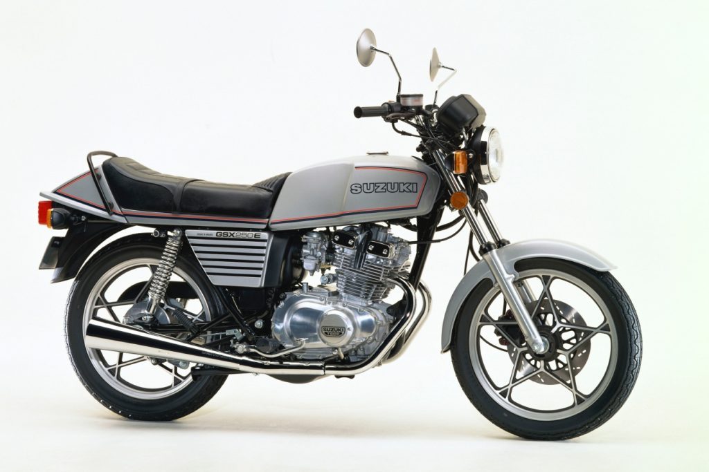 Pierwsze Suzuki z omawianej rodziny to GSX 250E, niewielki motocykl wyposażony w dwucylindrowy silnik. W tym samym roku pojawiły się jeszcze 3 modele – GSX 400E, oraz czterocylindrowe, potężne motocykle z silnikami o pojemności 750 i 1100 cm3. Ale to dopiero początek, gdyż inżynierowie Suzuki zaczęli się na dobre rozpędzać. Już w 1981 roku zadebiutował czterocylindrowy GSX 400F, a po dwóch latach wersja GSX 400FW chłodzona cieczą. W tym samym czasie pierwsze silniki dwucylindrowe zawitały w coraz popularniejszych soft-chopperach (wersje L).