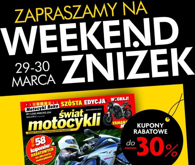 Szczegóły rabatów i dni, kiedy będzie można z nich korzystać, znajdziecie na kuponach w numerze 4/2014 Świata Motocykli. Regulamin naszej akcji.