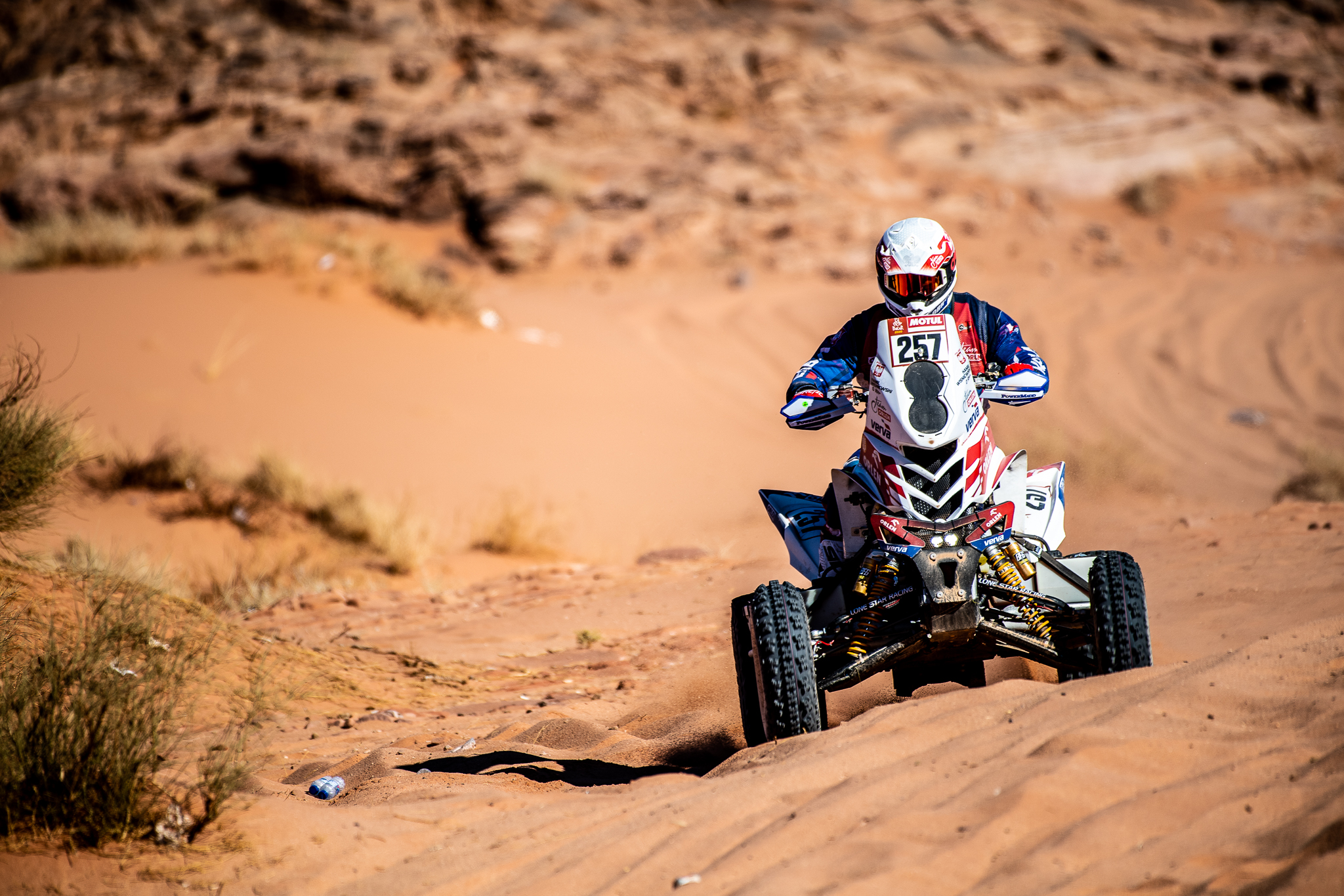 Podobno nic nie dzieje się przypadkiem i Kamil Wiśniewski dobitnie się o tym przekonał. Na III etapie rajdu Dakar, przez większość odcinka quadowiec ORLEN Teamu z pewnością irytował się tym, że jego Quad mocno odstaje od maszyn konkurencji na piaszczystych odcinkach. Co prawda nie pomagało to w walce o dobrą pozycję, ale przynajmniej uratowało Kamilowi życie. Pod koniec odcinka, gdy nieco zbłądził z trasy i jechał równolegle do prawidłowego szlaku, natrafił na… stalową linkę rozciągniętą w poprzek szlaku. Przypadkowo raczej się tam nie znalazła, bo po pierwsze – była na wysokości szyi, a po drugie – po co stalowa linka między kamieniami na pustyni? Na szczęście był to fragment trasy, gdzie Kamil nie mógł się napędzić, więc ostatecznie poza podrapaną szyją i bólem karku, wyszedł z tego bez szwanku. Aż strach pomyśleć, co by było gdyby jechał 130 km/h albo i więcej…
