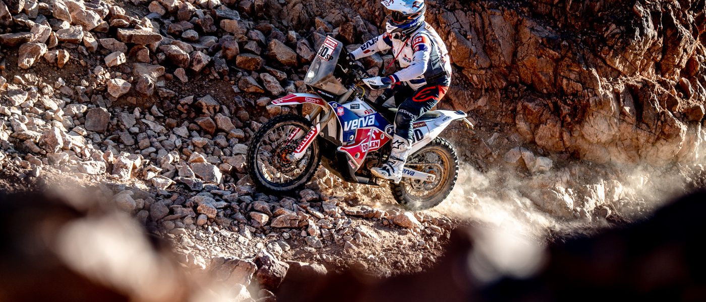 Początkowe problemy z nawigacją sprawiały, że z każdym kilometrem spadał w klasyfikacji, ostatecznie tracąc 10 minut do lidera, którym niespodziewanie został Ross Branch z Botswany, dla którego jest to drugi start w rajdzie. To nie tylko jego pierwsze zwycięstwo etapowe, ale także pierwsze zwycięstwo Afrykanina od czasów Alfiego Coxa z RPA! Zaraz za nim (1:24 min) uplasował się Sam Sunderland (KTM), który wskoczył także na prowadzenie w generalce. Trójkę motocyklistów tego dnia, zamknął Pablo Quintanilla (Husqvarna), który jest drugi w generalce. Zadowolony może być także Kevin Benavides z zespołu Hondy, który dzięki 4. miejscu etapowemu, podciągnął się na 3. w generalce. Zdecydowanie swojego tempa nie może nadal złapać Adrien Van Beveren, któremu ogromny problem sprawia nawigacja, a dzisiaj swoje dołożyła jeszcze skrzywiona felga, destabilizująca motocykl.