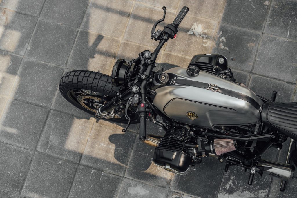 Reszta to tylko i aż, przemyślane akcesoria. Od eleganckich kół z serii BMW Option 719, po zegar Motogadget, osprzęt Beringer, gadżety Rizomy, okrągły reflektor LED z tradycyjnym już dla warsztatu Winstona grillem, dekle silnika Unit Garage, potężne filtry powietrza od DNA Filter i włoski układ wydechowy SC-Project.
