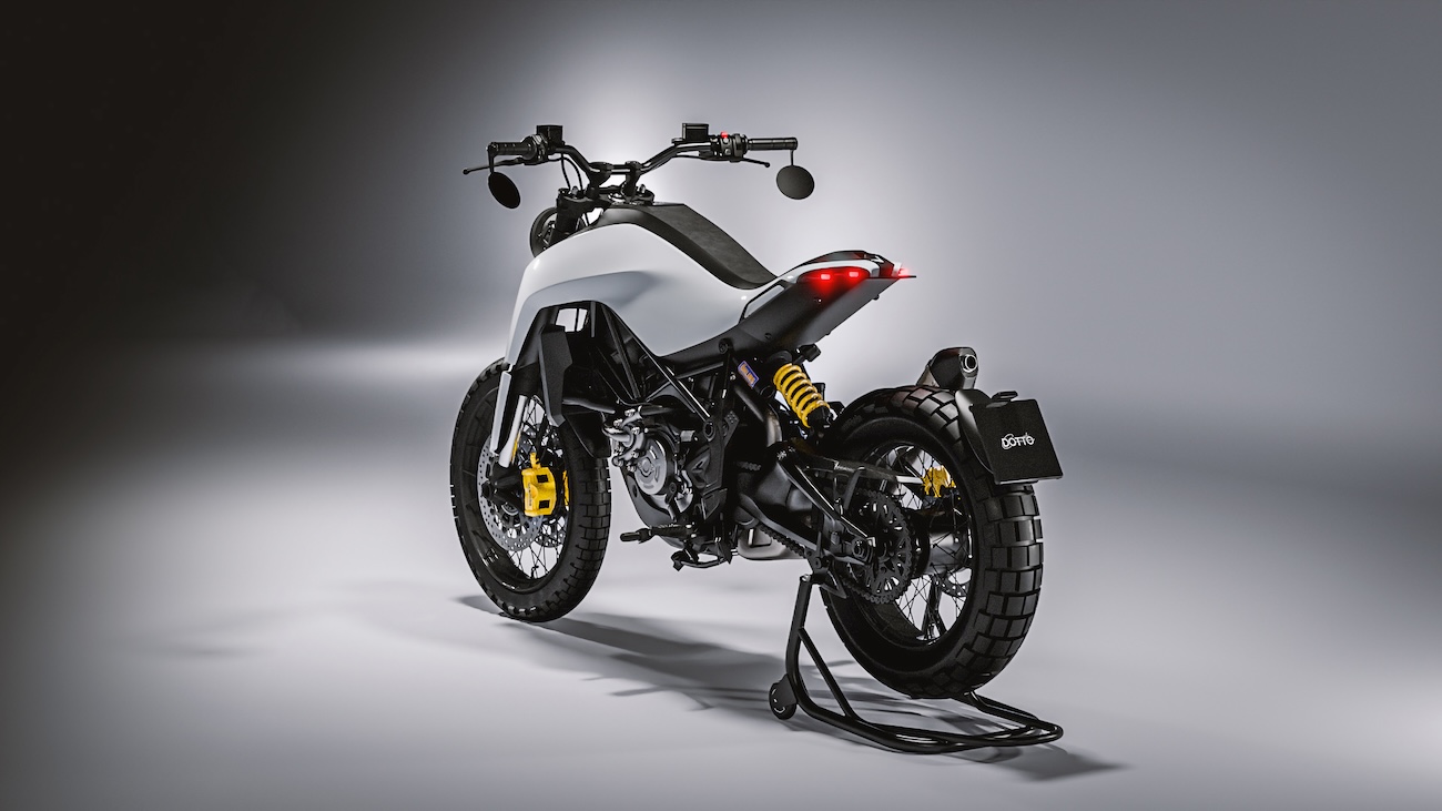 By sprostać zadaniu, budowniczy zaprojektowali minimalistyczne, smukłe i lekkie nadwozie z polimerów i karbonu, nowe siedzisko, zbiornik paliwa oraz błotniki. Po zabiegach designersko-odchudzających, wymianie lamp, osłony silnika, wydechu i wielu innych detali, motocykl z żadnej strony nie przypomina oryginału. Gdy projekt był prawie gotowy, Francesco i Gianluca stwierdzili, że wciąż czegoś mu brakuje. Pochylona pozycja sprawdzała się podczas szybkiej jazdy, ale była niezbyt użyteczna w terenie. I tu nastąpił przebłysk projektanckiego geniuszu: budowniczy zaprojektowali autorski mechanizm szybkiej regulacji pozycji kierownicy. W ciągu kilku chwil z ostrego nakeda można przeobrazić motocykl we wszędobylskiego adwenczera.