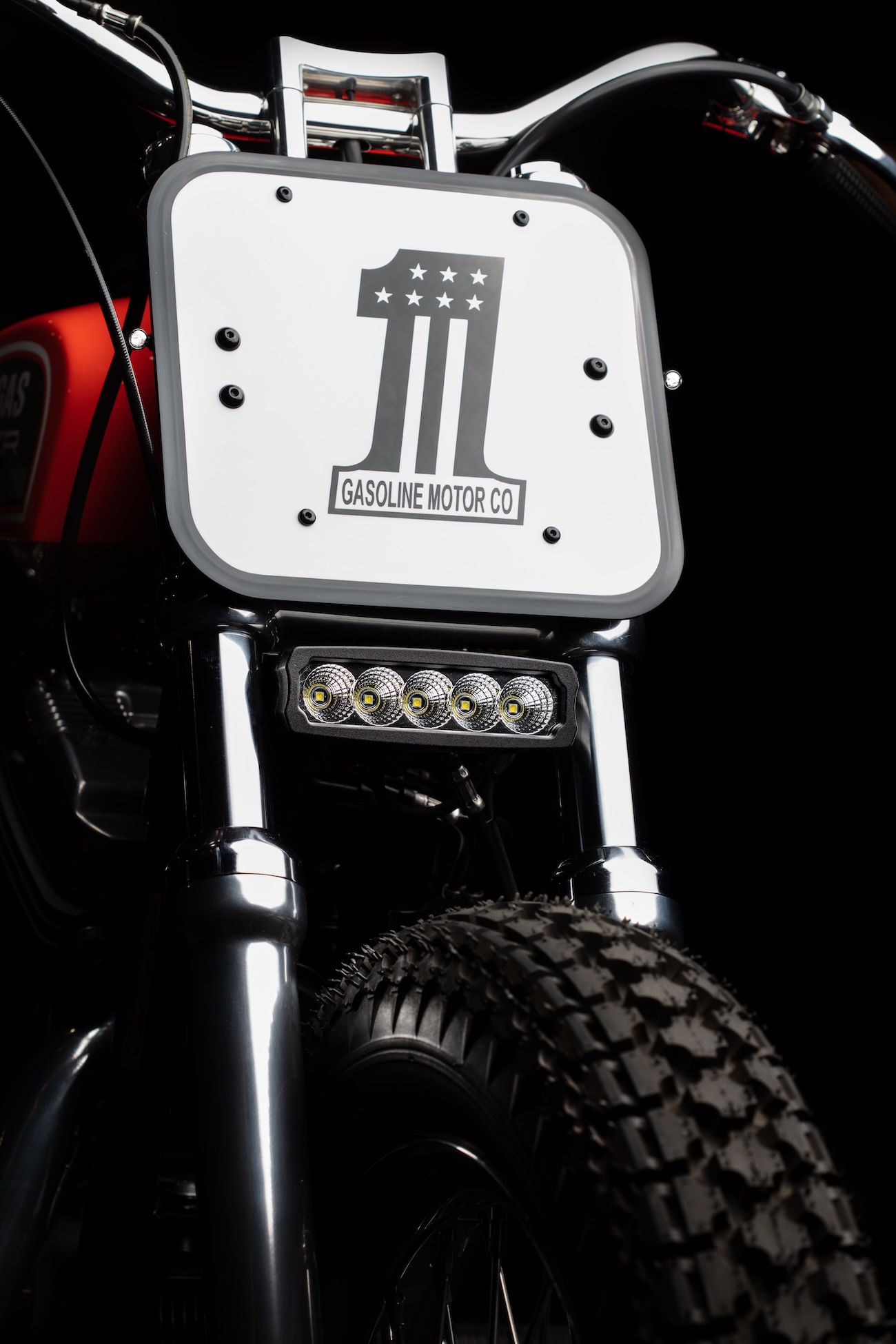 Według standardów AMA, motocykl do flat tracku powinien stać na 19-calowych felgach. Ekipa Gasoline Motor Co. wykorzystała szprychowane obręcze 19×4″ z nyplami ze stali nierdzewnej. By zachować klasyczny charakter, na felgi trafiły opony Firestone – w pełni zdolne do jazdy bokiem na pełnym gazie. By moc przekazywana była z mniejszymi stratami, oryginalny pas napędowy ustąpił miejsca klasycznej zębatce i łańcuchowi.