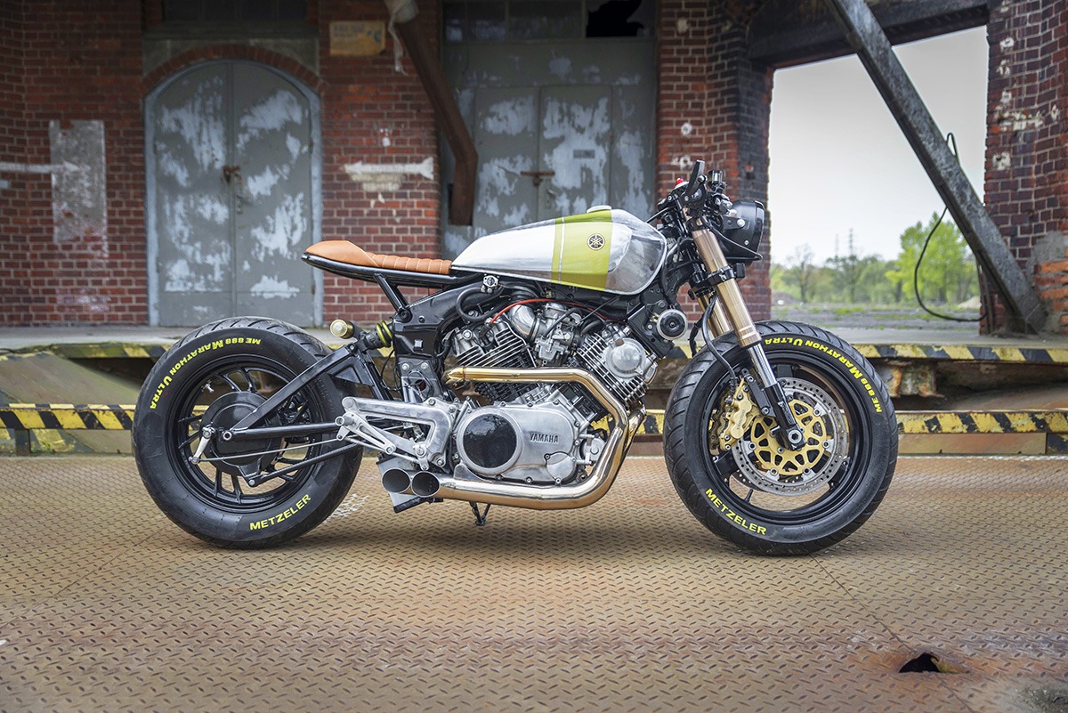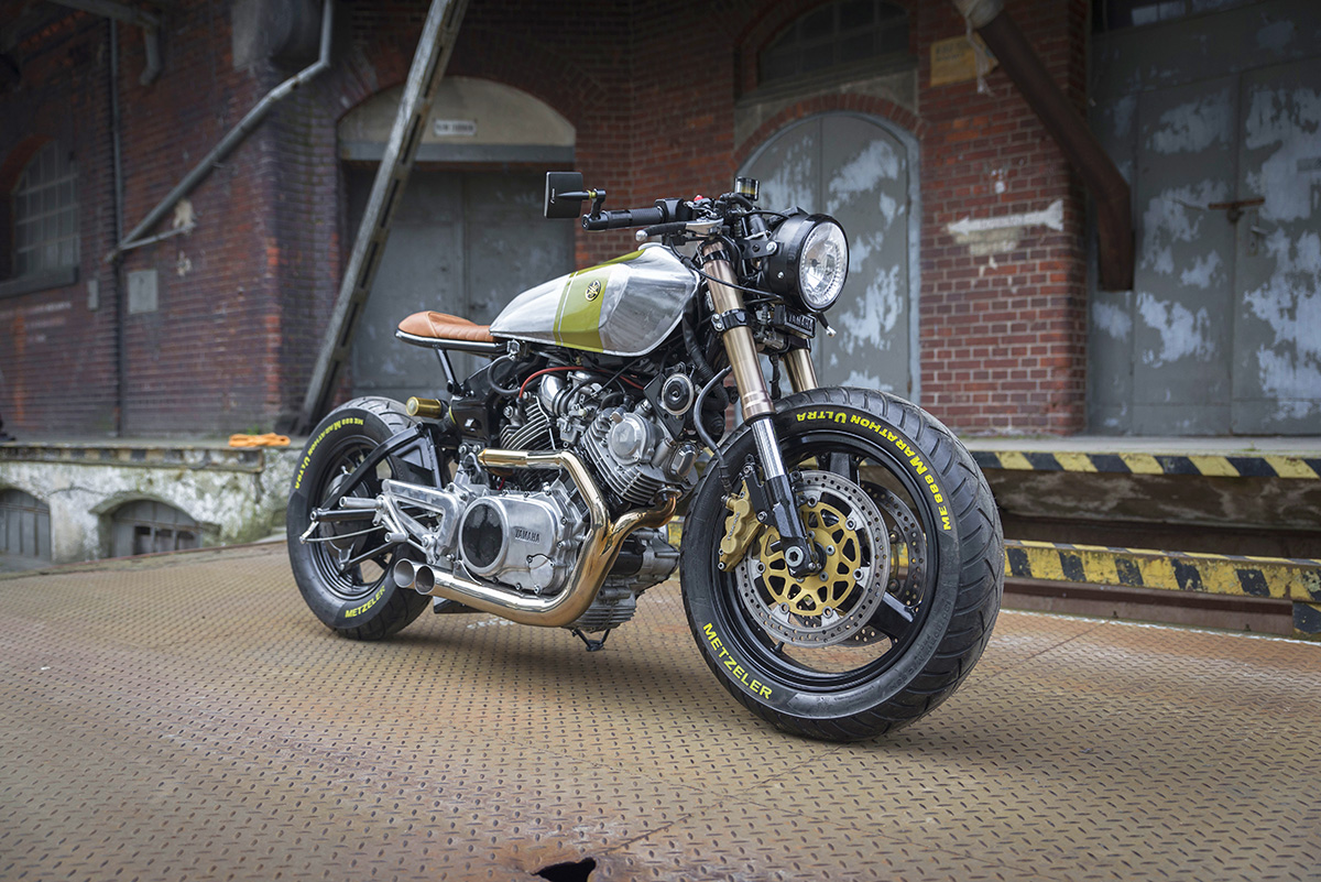 Oryginalny zbiornik paliwa trafił na złom, a jego miejsce zajął bak z Kawasaki KZ 650D. Słowa uznania dla budowniczego należą się za wielogodzinne próby z cynowaniem. Niestety, efekt końcowy go nie zadowolił, dlatego postanowił ponownie wyszlifować zbiornik do gołego metalu, by pokryć lakierem bezbarwnym i ozdobić oliwkowymi pasami. „Prekursorem w przerabianiu chopperowej linii XV-ki na cafe racera był warsztat Hageman. Prosty zabieg, polegający na implementacji zbiornika z Benelli, przetarł ścieżkę dla kolejnych projektów opartych na leciwym japończyku” – tłumaczy Jakub Beker.