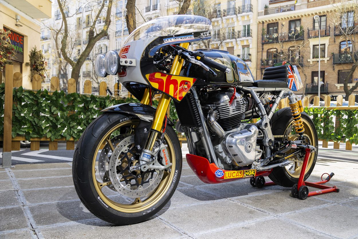 Serce Royala również nie pozostało seryjne. W środku pracują wałki S&S oraz tłoki o zwiększonym stopniu sprężania. Silnik współpracuje ze sportowymi filtrami DNA oraz modułem Power Commander. Nie mam pojęcia, o ile udało się podnieść moc tego Continentala GT. To bez znaczenia. Ten motocykl na postoju wygląda, jakby pędził 300 km/h, i to jest chyba magia projektów XTR Pepo.