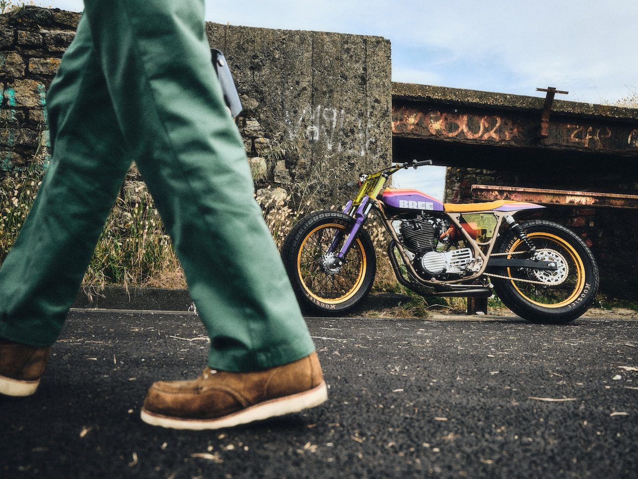 Moritz urodził się w 2004 roku, a jego ojcem jest Uli Bree, scenarzysta, reżyser, aktor, a przez wiele lat również organizator imprezy „Tridays” w Neukirchen, skupiającej miłośników marki Triumph. Chłopak dorastał więc w kreatywnym i mocno motocyklowym otoczeniu. To sprawiło, że pierwszy raz wsiadł na Yamahę PW50 gdzieś w okolicach trzeciego roku życia. Później sprawy nabrały niesamowitego tempa. W 2013 roku 11-letni Moritz zaprojektował grafiki w customowym Triumphie Scramblerze „Arlecchino”, zbudowanym przez markę Free Spirits Parts. Rok później maczał palce w Scramblerze „Wambo” tej samej ekipy. Jakby tego było mało, w tym samym roku chłopak zbudował street trackerową Yamahę MT-03 „Fast Friends”, pracując pod okiem Dirka Oehlerkinga z Kingston Custom (jego BMW R 18 opisywałem w numerze 09/2023).
