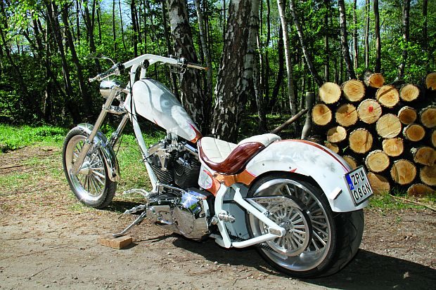 Ta ekstrawagancka maszyna należy do Sylwestra Iwańczuka. Sylwek, zwany przez przyjaciół Nochalem lub Noniem, wraz z podobnie zakręconymi kumplami prowadzi w Szczecinie motocyklową stajnię o nazwie Habeta (www.habeta.pl). Można tu kupić „żelazo z Milwaukee” w dowolnym kolorze i gatunku, a także zlecić przebudowę posiadanego Harleya.
