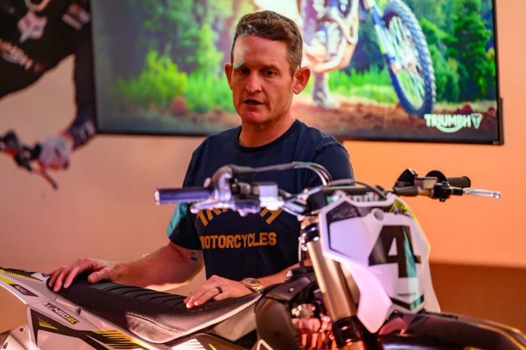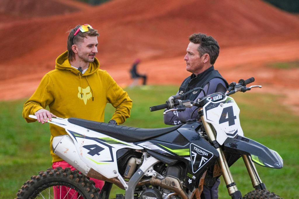 Kiedy w 2006 roku wpisałem w Internecie hasło „motocross”, aby dowiedzieć się czegoś o tym sporcie, nazwisko Ricky Carmichael było jednym z pierwszych wyników. Zgłębiając jego historię, uczyłem się języka angielskiego i poznawałem piękno off-roadowego świata. Z 16 mistrzowskimi tytułami i 150 zwycięstwami na koncie, Ricky zakończył karierę z przydomkiem GOAT (Greatest of All Time), na zawsze zmieniając oblicze tego sportu. Odszedł jako mistrz, ale nie zniknął ze sceny – kontynuował pracę jako ambasador i komentator, dzieląc się swoją wiedzą i doświadczeniem. Niedawno podjął się kolejnego wyzwania i został zaangażowany w budowę pierwszych crossowych Triumphów. To właśnie podczas prezentacji nowego TF450-RC udało mi się porozmawiać z moim idolem i zdobyć autograf.