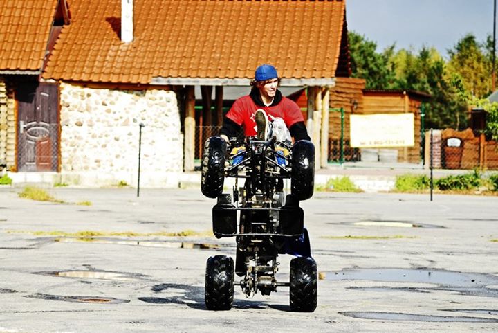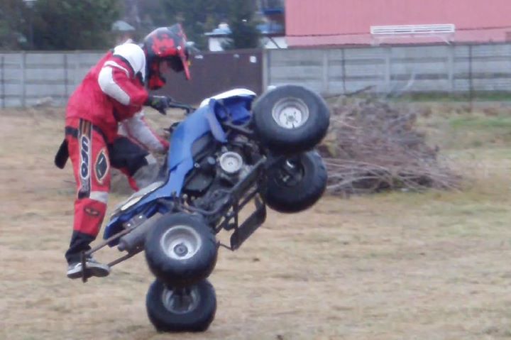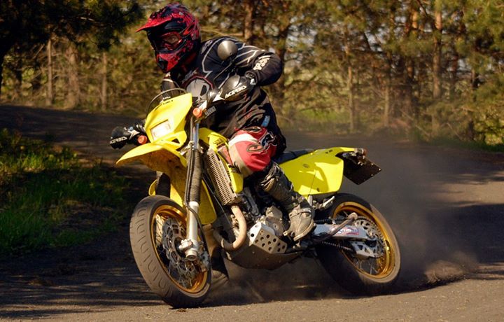 Wtedy jako drugie moto pojawiła się Yamaha DT 125r w wersji SUPERMOTO 🙂 ten mały sprzęt dał mi dużo więcej radości niż sportowy motocykl. Zaczęła się zabawa na tylnym, przednim kole, jazda w terenie po torze mx, no i pierwsze moje połamane kości 🙂 To chyba była pechowa sztuka, bo kiedy ją sprzedałem, po tygodniu przeczytałem artykuł w gazecie 🙂 „yamahą w płot”. Okazała się to moja „była” DT. Ten mały SM dał mi tyle frajdy, że CBR została sprzedana i pojawił się kolejny motocykl DRZ. W między czasie przewinął się quad, na którym próbowałem różnych sztuczek, pamiętam, że tamta jazda quadem bardzo mnie relaksowała, słuchawki na uszy i na plac ćwiczyć jazdę na bocznych kołach, na tylnych, na tylnych tyłem itp. – to był bardzo fajny okres w moim życiu. Następnie brat dokupił do DRZ piękne złote koła sm i zaczęła się trochę inna jazda, no i pierwsze torowanie. Pamiętam, jak pojechaliśmy z kolegą na Tor Lublin 🙂