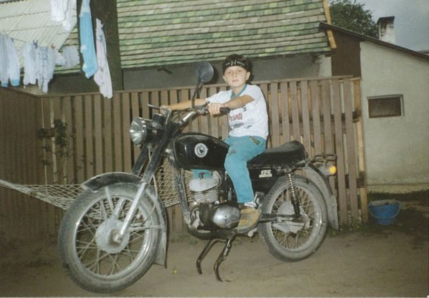 Zawsze powtarzam, że pierwsze kilometry na jednośladzie pokonałem jeszcze przed narodzinami, w brzuchu mamy… Była to trasa z okolic Szczecina do Polski centralnej, motocyklem CZ 350. Jako dzieciak pomagałem Dziadkowi naprawiającemu maszyny przyjaciół i podróżowałem, jako pasażer, na pokładzie WSK 125. Pierwsze próby samodzielnej jazdy podjąłem na Simsonie SR2 z roku 1959 (tak, to ten z pedałami), który pozostał w rodzinnym garażu do dzisiaj. Jako nastolatek stałem się szczęśliwym posiadaczem pięknej, czerwonej MZ ETZ 150. W wieku 16-stu lat, z okazji Dnia Dziecka, dostałem w prezencie od rodziców swój pierwszy, japoński sprzęt – Hondę CM 250 Custom. Dwa lata później wszystko nabrało zawrotnego tempa i w zasadzie całe moje dorosłe życie zostało podporządkowane dwóm kółkom.