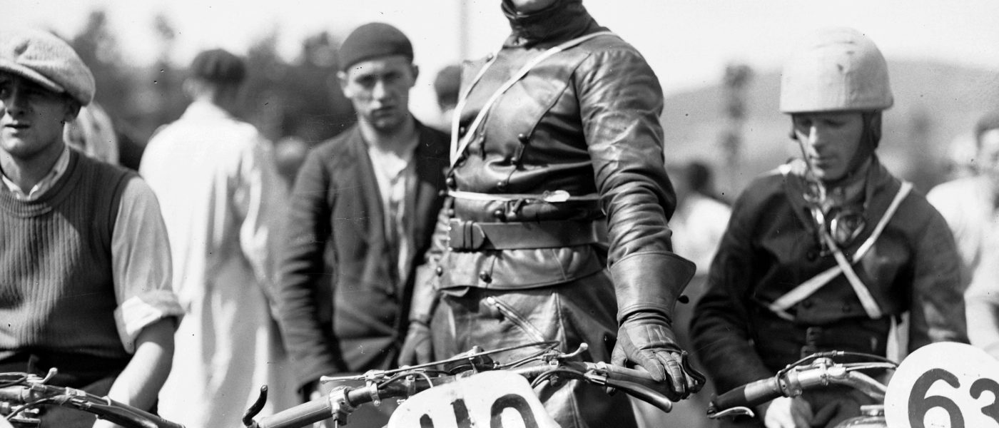 Ignacy Telechun (stoi w środku) podczas wyścigów ulicznych w Tarnowie. Rok 1932. Jego motocykl to BMW (z tablicą rejestracyjną W 20985).