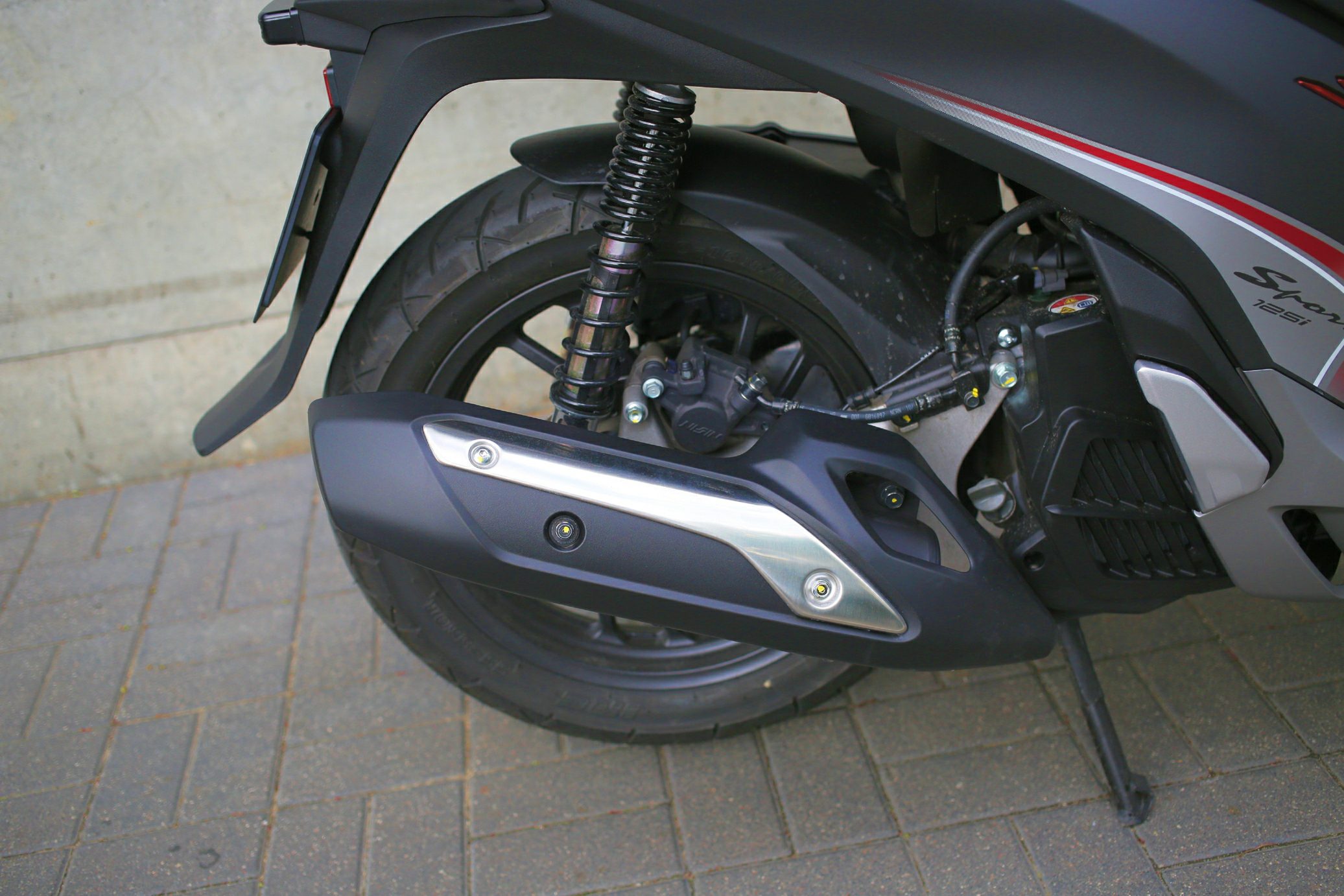 Tak samo nie doświadczyłem bólu pleców podczas pokonywania większych dziur. Większość z nich skuter wybiera bardzo dobrze, a przy tym w zakrętach prowadzi się go pewnie. Zawieszenie jest zestrojone optymalnie. Dodatkowo 16-calowe koła wspierają je w wybieraniu nierówności. Przy tym skuter nie stracił typowej dla segmentu lekkości prowadzenia.