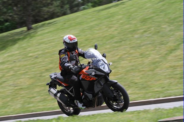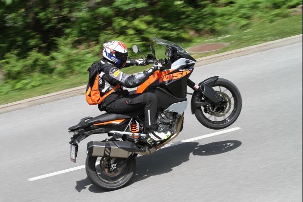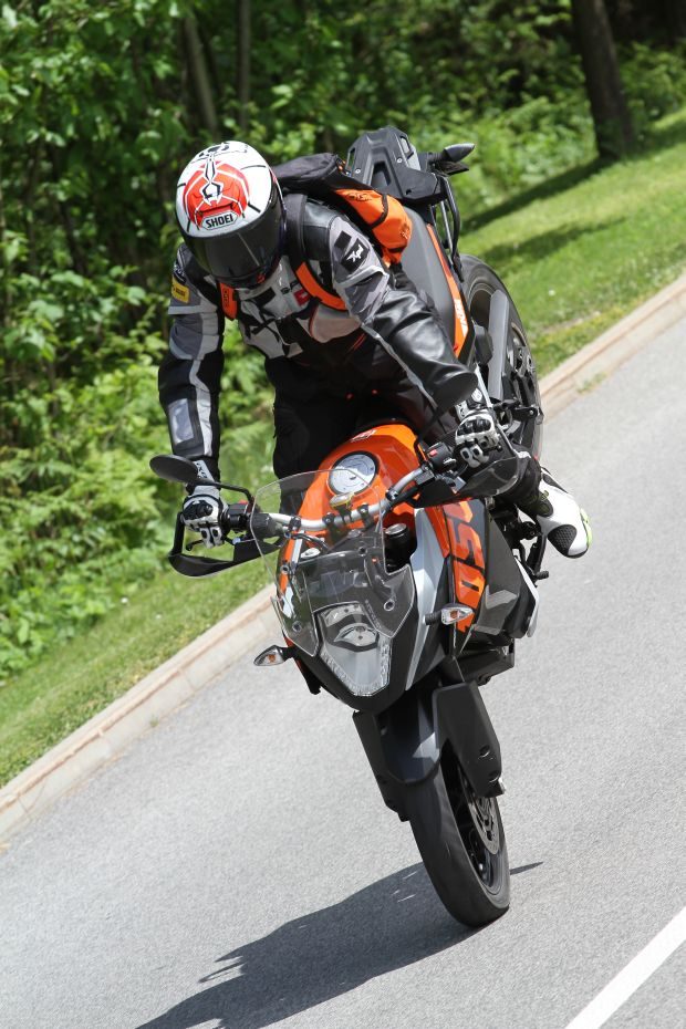 Muszę przyznać, że był to model, na który (zaraz po Adventure R, o czym za chwilę) najchętniej wsiadałem. Mogłem bez problemu dawać upust swojemu „stuntowemu” wypaczeniu. Motocykl jest bardzo zwinny i co chwilę, z dziką przyjemnością, wysoko unosi przednie lub tylne koło. W zakręty możemy pakować się w stylu supermoto, z uślizgiem tylnego koła. Najbardziej cieszył mnie fakt, że takie sztuczki przychodziły na 1050 naturalnie, bez przymuszania motocykla do rzeczy, których nie chce robić.
