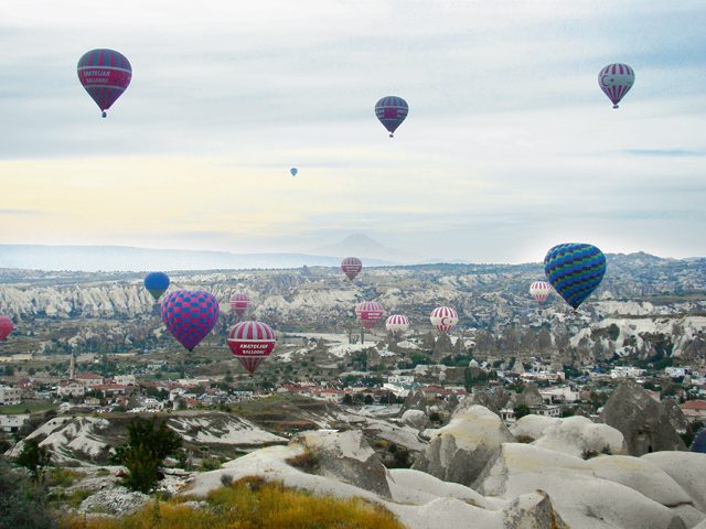 Pobieżnie zwiedziliśmy to cudowne miasto, które aby poznać i zrozumieć, należałoby eksplorować tygodniami. Cudem unikając rozjechania, Przez most nad Bosforem wydostaliśmy się z tego kotła czarownic. Jadąc pod silny wiatr płatną, ale świetną drogą przez Ankarę, jednym skokiem dofrunęliśmy do Kapadocji. I tu poczuliśmy, że jesteśmy w Azji Mniejszej. Goreme – widok startujących w porannej ciszy chmury balonów jest nie do opisania. W tle Kapadocja, twory skalne niczym z baśni tysiąca i jednej nocy, domy, kościoły i twierdze wykute w wapieniu tysiące lat temu. Za 100 euro można zobaczyć to wszystko z góry. To cena, jakiej zażądał od nas szef kempingu Panorama Ahmet, bez mrugnięcia okiem oferując „special price only for you” w wysokości 150 euro Włochom i Niemcom. Cóż. Turcja jest bardzo droga dla turystów. Cena benzyny 2 euro za litr, kemping średnio 15-20 euro za dobę (2 osoby, moto, namiot), a reszta jest według uznania zawsze sympatycznego, ale sprytnego handlowca. Bo tu nigdzie nie ma oficjalnie wywieszonych cen, gdziekolwiek jesteś, negocjujesz je. Wszędzie jest „very special price”, czyli normalna cena razy dwa lub trzy.