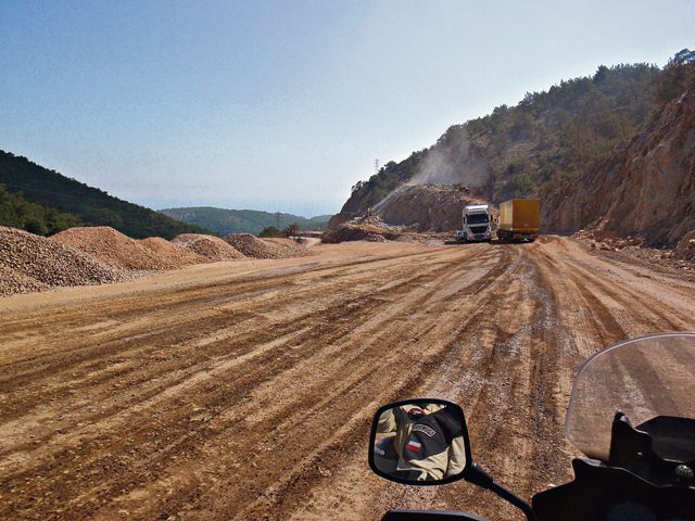 Niespodziewanie spotykamy Niemca na Royal Enfildzie w wersji Diesel (3,5 KM mocy), który jechał tu dwa tygodnie z prędkością 60 km/h. No cóż, jak się chce, to wszędzie na wszystkim można dojechać. Za Kapadocją w kierunku Erzincan zaczyna się wschodnia Turcja. Najpierw drogi (mimo że szerokie, to coraz bardziej dziurawe, z nawierzchnią składającą się ze smoły zmieszanej z kamyczkami) stają się coraz bardziej puste. Nie spotykamy nikogo przez dziesiątki kilometrów. Potem zaczynają się odcinki po 20-30 km bez twardej nawierzchni. Nie dokończyli remontu i tak ludzie jeżdżą po zwałach gliny przeplatanych żwirowiskami, piachem omijając tysiące dziur głębokich na 30-40 cm. TIR-y spuszczają powietrze z kół do połowy i mkną po 60 km/h, zasypując wszystko i wszystkich tumanami kurzu. Nikt nie patrzy, czy jedzie prawą, czy lewą stroną. Wolna amerykanka. Cały czas obawiałem się, czy nie urwie się nam stelaż z kuframi. 50 kg bagażu w trzech kufrach umocowanych na metalowym stelażu do skaczącego po dziurach motocykla pobudza wyobraźnię.