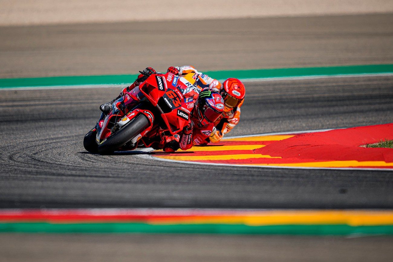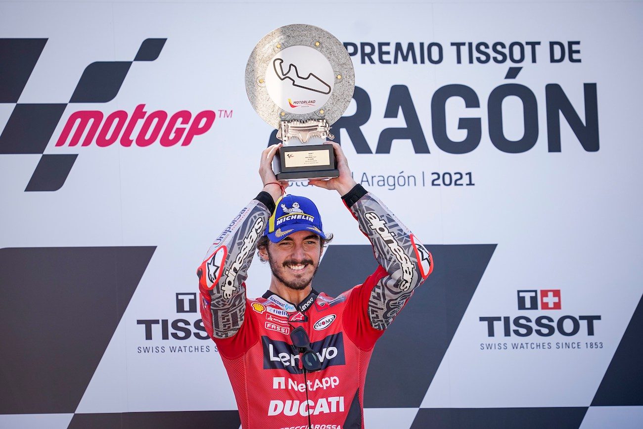 Potem jednak Pecco zaliczył serię słabszych występów, a do TOP3 wrócił dopiero w sierpniu, podczas GP Austrii. Końcówka roku należała jednak do Włocha. W Aragonii, po starcie z pole position, sięgnął po swoje pierwsze zwycięstwo w MotoGP, po drodze zaliczając świetną walkę z nikim innym, jak z ośmiokrotnym mistrzem świata, Markiem Marquezem.