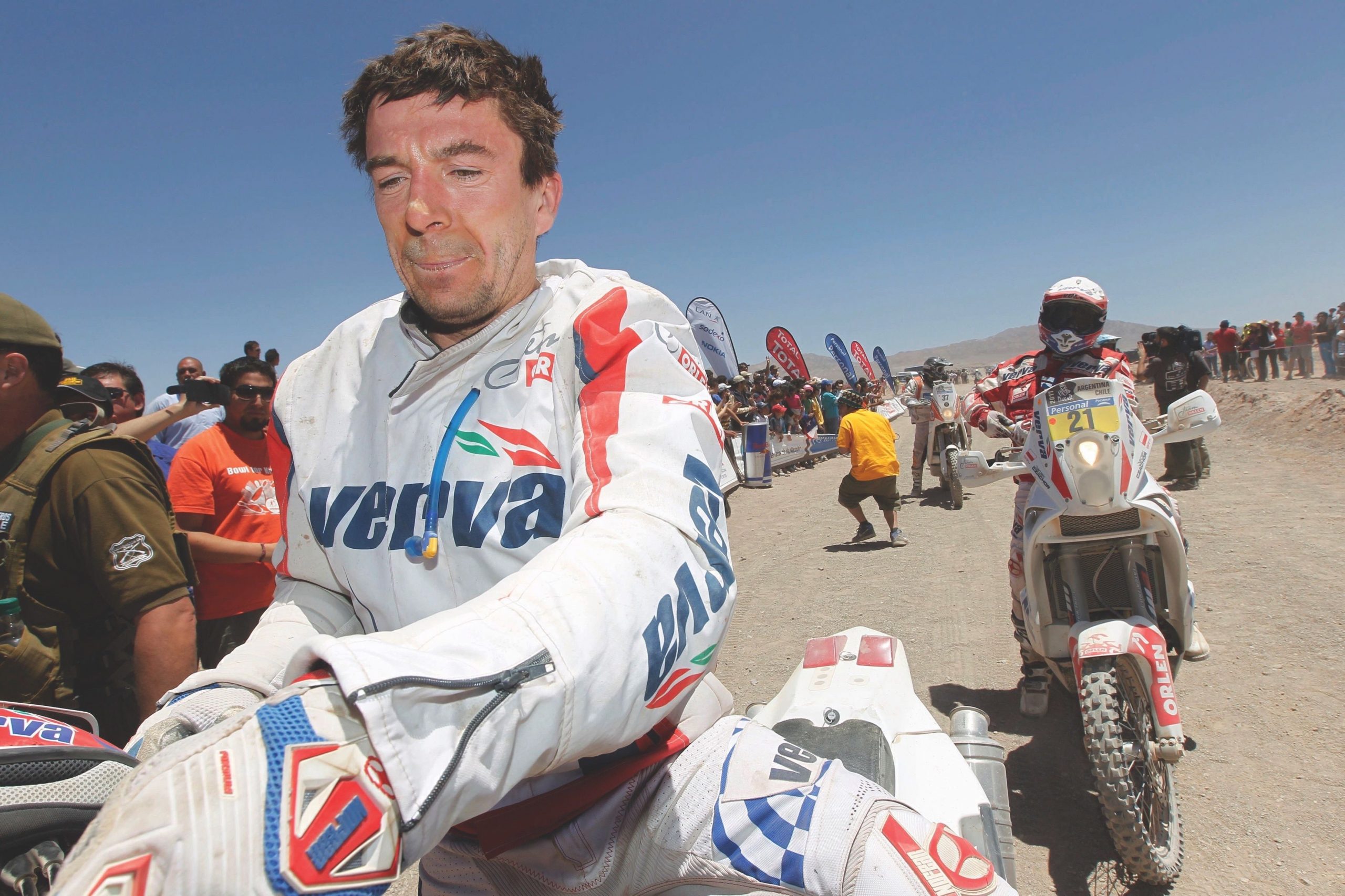 Po 13. etapowym zwycięstwie w Dakarze Coma wyszedł na prowadzenie, z przewagą dwóch sekund nad Despresem. Jednak po decyzji sędziów ukaraniu zawodnika za naruszenie regulaminu w strefie startu Francuz stracił 10 minut. Podczas kolejnego dnia rajdu Coma zaliczył upadek na 80. kilometrze odcinka specjalnego. Katalończyk pojechał dalej, ale miał kłopoty z uszkodzoną kierownicą i dokuczał mu ból lewego nadgarstka. Mimo to utrzymał pierwszą pozycję w klasyfikacji. Z kolei podczas dziewiątego etapu dramatyczne chwile przeżył Marek Dąbrowski. – Spoglądając na roadbook, w kurzu nie zauważyłem koleiny i zaliczyłem wywrotkę. Skręcona kostka to jeszcze nie jest nic takiego. Boli, ale trzeba jechać dalej, do mety w Buenos Aires – mówił Dąbrowski..