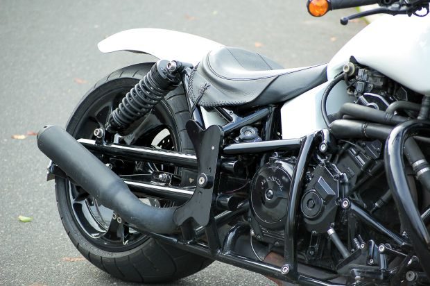 W swoim garażu Seba zmajstrował kołyskową ramę własnego pomysłu z jednocalowych rur. Wahacz, z racji większych obciążeń, został wykonany z rur o średnicy 1,25 cala. Amortyzatory zaadaptowano z V-Maxa.