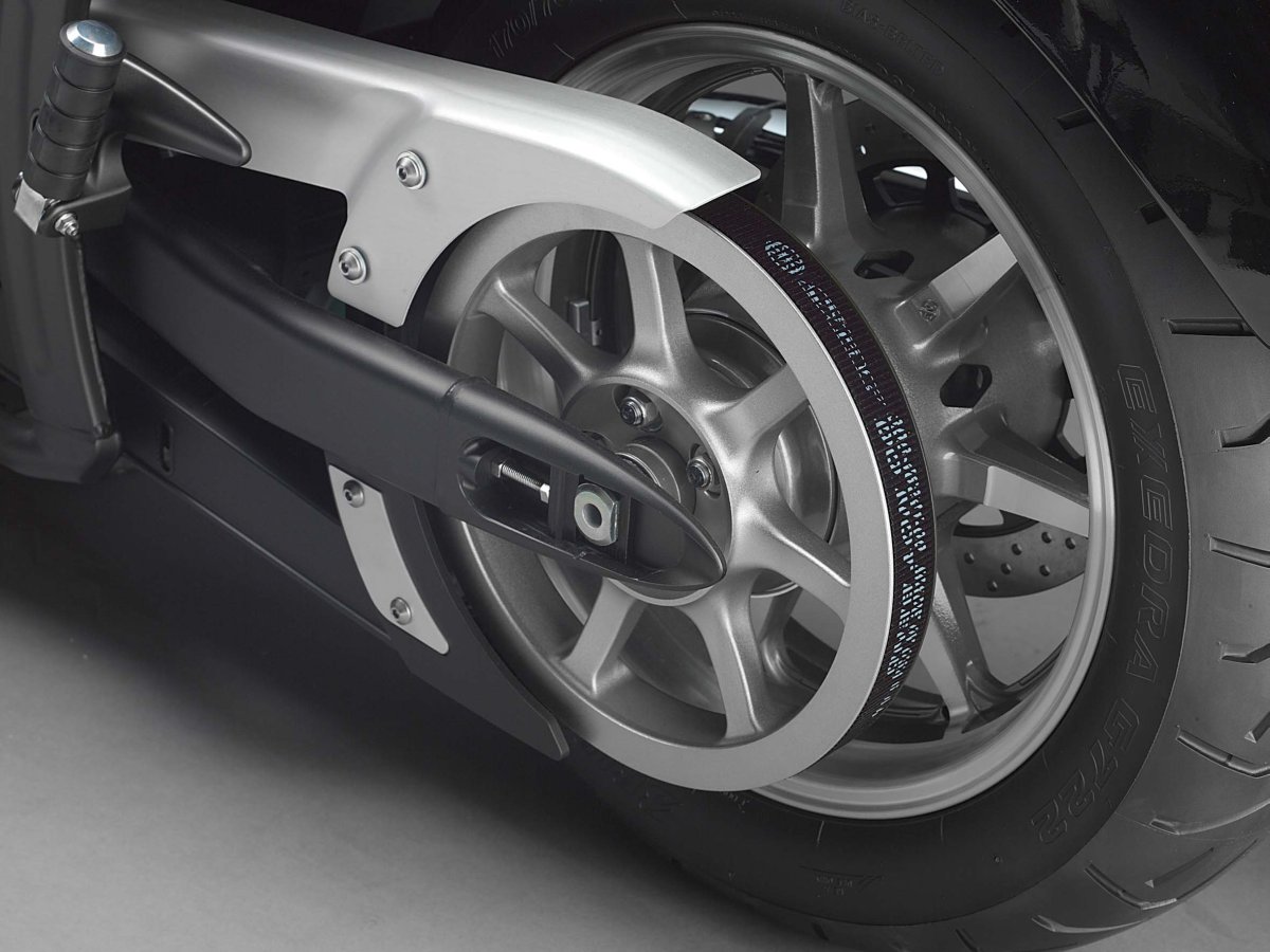 Powyżej: Pasek zębaty przekazuje napęd na tylne koło. Jest czysty i cichy, skutecznie łagodzi szarpnięcia. Doskonale spisuje się w modelu Midnight Star 1300. Poniżej: od 2010 r. Midnight Star dysponuje zintegrowanym systemem hamulcowym UBS, w którym zawsze hamowane są dwa koła. Wraz z układem hamulcowym UBS nie wprowadzono niestety systemu przeciwpoślizgowego ABS. Pojawił się dopiero w 2015 r.