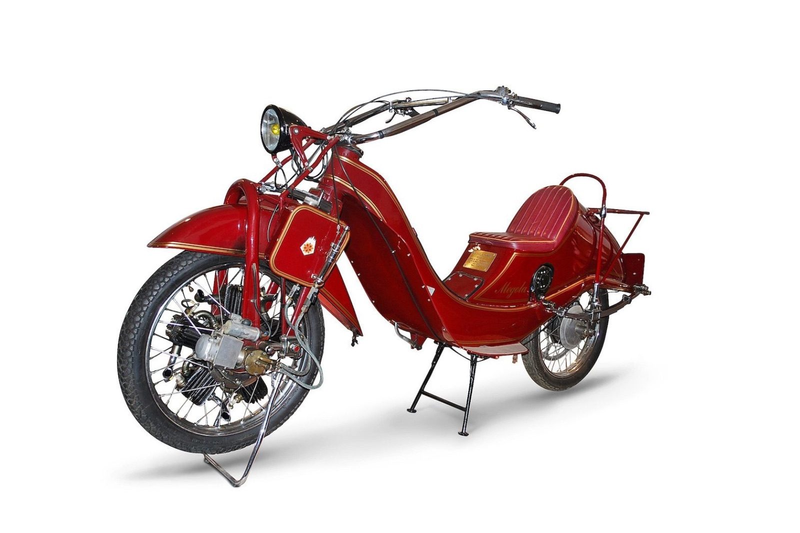 Czy napęd przedniego koła w motocyklu ma sens? Nie potrafię powiedzieć, nigdy czymś takim nie jeździłem. Raz tylko miałem okazję na żywo oglądać takie dziwadło – Megolę z gwiazdowym silnikiem na piaście przedniego koła. Ten niemiecki producent (jeszcze pod nazwą PAX) zaczynał zdecydowanie dziwniej. Rotacyjny, trzycylindrowy silnik umieszczony był w tylnym kole, a jakby tego było mało, zawory ssące znajdowały się … w tłokach. Dopiero w roku 1920, już jako Megola, maszyna doczekała się 5 cylindrów, ale ciągle na tylnym kole. Chwilę potem jednostka powędrowała na przód. Od 1922 roku ta dziwna maszyna sprzedawana była w ilościach ok. 500 sztuk rocznie, a co dziwniejsze – nawet nieźle sprawdzała się w sporcie. W roku 1924 Megola wygrała Wyścigowe Mistrzostwa Niemiec w klasie 500 (przetrzepując futerko nawet fabrycznemu zespołowi BMW), ze średnią prędkością 144 km/h. W tamtych czasach brak sprzęgła, skrzyni biegów, czy praktycznie hamulców – nie stanowił przeszkody. Aby się zatrzymać, trzeba było wyhamować niemal do zera i wyłączyć silnik. Aby ponownie ruszyć, wystarczyło obrócić przednim kołem, czyli był to po prostu start “na pych”. W sumie wyprodukowano ponad 2 tysiące egzemplarzy tego motocykla w wersjach Sport i Turist.