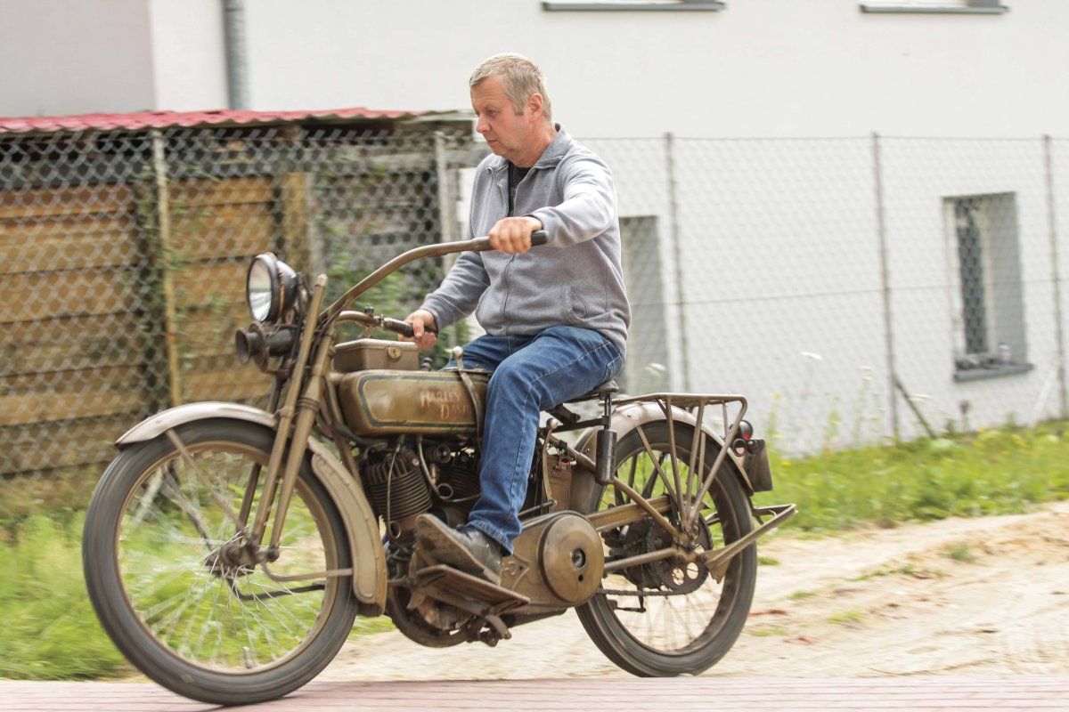 Pan Tomasz zapewne zauważył zaskoczenie na mojej twarzy i szybko informuje: ta maszyna, jeśli jest taka potrzeba lub chęć, służy do codziennej jazdy, nawet długich wypadów. Najważniejsze, by była sprawna technicznie i odpowiednio konserwowana. Wyjaśnienie jednak nie wydaje mi się wystarczające. Jak to możliwe? Motocykl niedługo dobiegnie 100 lat, a używany jest do codziennej jazdy? To prawda, do dzisiaj nie do końca to rozumiem, niemniej chylę czoła przed właścicielem oraz stuletnią konstrukcją Harleya-Davidsona model J z 1920 roku.