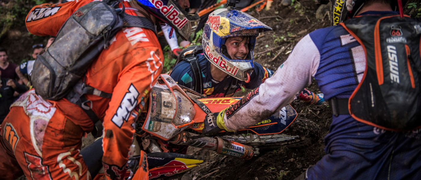 Swoją drugą szansę Mani miał jeszcze w Zielonym Piekle – stromym leśnym podjeździe, na którym Graham Jarvis utknął w połowie drogi. Na tyle jednak sprytnie, że zablokował najlepszą linię przejazdu i Lettenbichler utknął za nim. Gdy Jarvis wydostał się z 20-tego Check Pointu pełnym gazem ruszył w stronę mety, z dziecinną łatwością wjeżdżając pod ostatnie trudne podjazdy. Dzięki niewielkim problemom Manuela pod koniec wyścigu, Graham mógł spokojnie świętowac na mecie swoje piąte już zwycięstwo na Erzbergrodeo i wyrównanie rekordu ilości wygranych Tadka Błażusiaka. Lettenbichler zameldował się na drugim miejscu, a podium dopełnił rozkręcający się z biegem wyścigu Mario Roman, który wyprzedził swojego kolegę z zespołu Sherco Wade’a Younga właśnie w Zielonym Piekle.