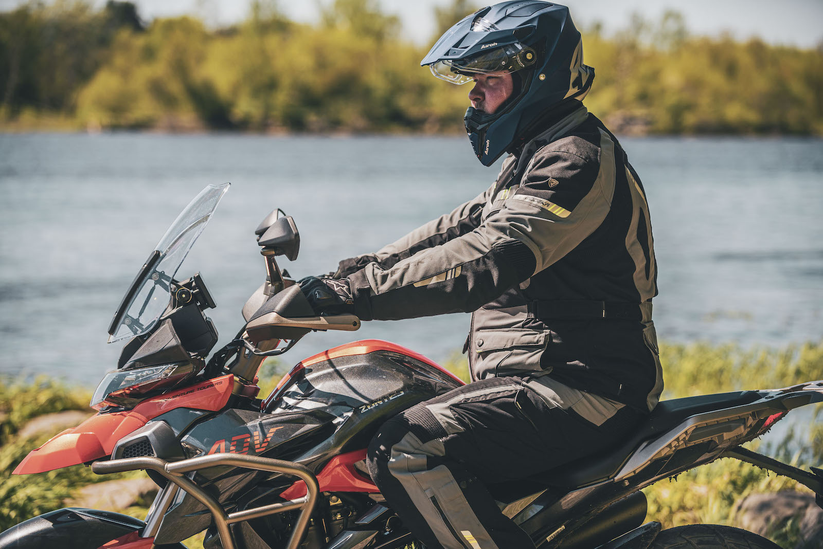 Nie jest to typowy kask crossowy, a raczej turystyczna hybryda. W standardzie jest wyposażony w wizjer, który bardzo przypadł mi do gustu – jest duży, z równie dużym Pinlockiem, dzięki czemu daje szerokie pole widzenia, co jest ważne zwłaszcza w mieście. Ponadto ząbki regulujące wysokość otwarcia trzymają mocno, dzięki czemu można jeździć z uchyloną szybką nawet po dużych wertepach, bez obawy że opadnie. Wizjer można także całkowicie zdemontować, założyć zaślepki i używać gogli.