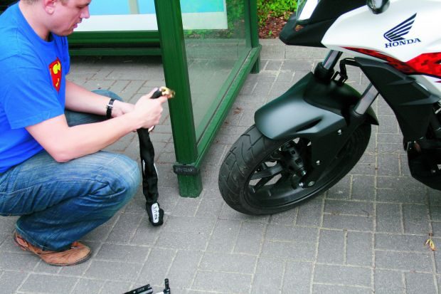 Blokada w momencie spięcia z łańcuchem działa jak bardzo solidna kłódka. Największym mankamentem zestawu jest masa sięgająca niemal 4 kg. W codziennym użytkowaniu komplet staje się niezbyt poręczny, ale za to gwarantuje najwyższy poziom skuteczności ochrony motocykla podczas postoju.