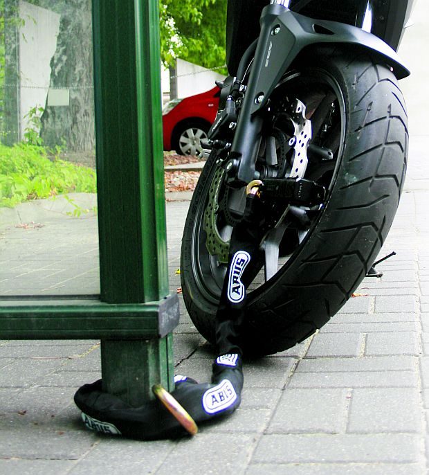 Blokada w momencie spięcia z łańcuchem działa jak bardzo solidna kłódka. Największym mankamentem zestawu jest masa sięgająca niemal 4 kg. W codziennym użytkowaniu komplet staje się niezbyt poręczny, ale za to gwarantuje najwyższy poziom skuteczności ochrony motocykla podczas postoju.
