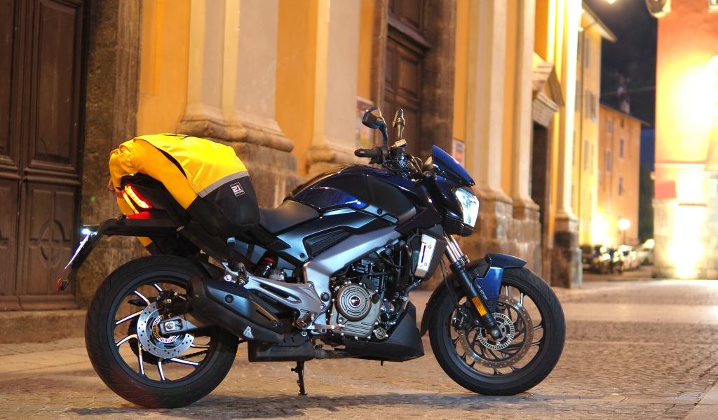 Po załadowaniu rogala sprzętem biwakowym i ubraniami ten nabiera kształtu. Przewagę nad zwykłymi torbami widać już na pierwszy rzut oka. Jest stabilny, a możliwość jego zgubienia minimalna. Dodatkowo wykorzystujemy do montażu paski, które ułatwiają operację przymocowania torby do motocykla. Na górę możemy wrzucić kolejną torbę. Wszystko działa perfekcyjnie.