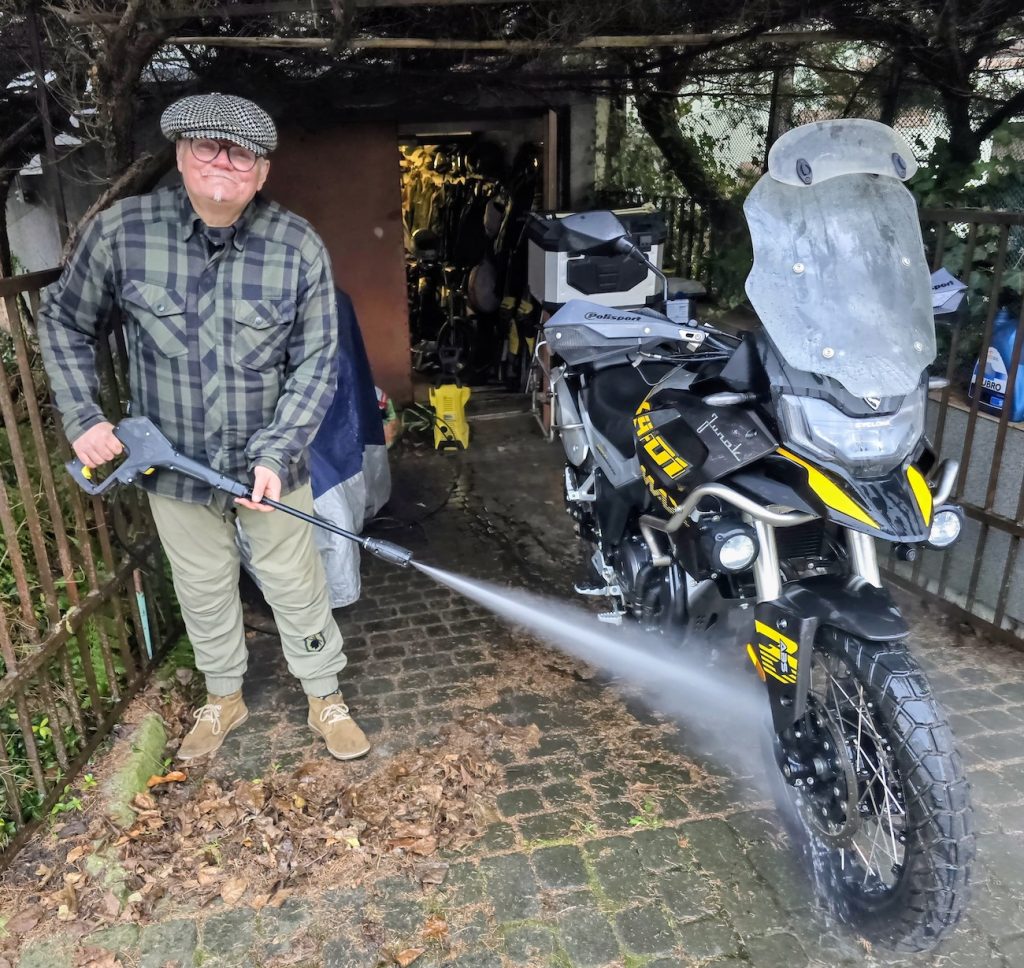 Po powrocie z wyjazdu w ruch pójdzie myjka wysokociśnieniowa, bo motocykl prawdopodobnie będzie solidnie ufafluniony błotem. Umyć, przedmuchać sprężonym powietrzem — i po sprawie. Ostatnią czynnością będzie ponowne nasmarowanie łańcucha. Potem maszynę można odstawić na kolejne kilka tygodni. To najlepszy sposób na przezimowanie motocykla. Dwa–trzy takie wypady i sami się zdziwicie, że nawet nie zauważyliście, iż właśnie zaczyna się kolejny sezon.