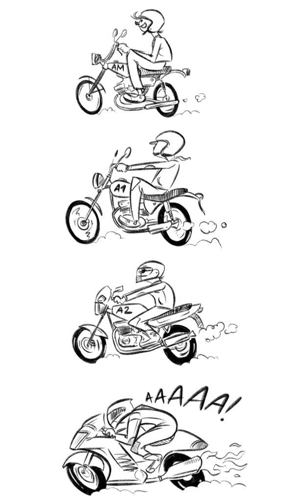 Jest to dobre rozwiązanie, gdyż nie dopuszcza ono początkujących „młodych-gniewnych” do najszybszych motocykli. Z drugiej strony, zrobienie po kolei wszystkich stopni prawa jazdy kategorii A, może trwać kilka lat i wiązać się z dużymi kosztami. Jak podejść do sprawy, by maksymalnie uprościć ten proces?