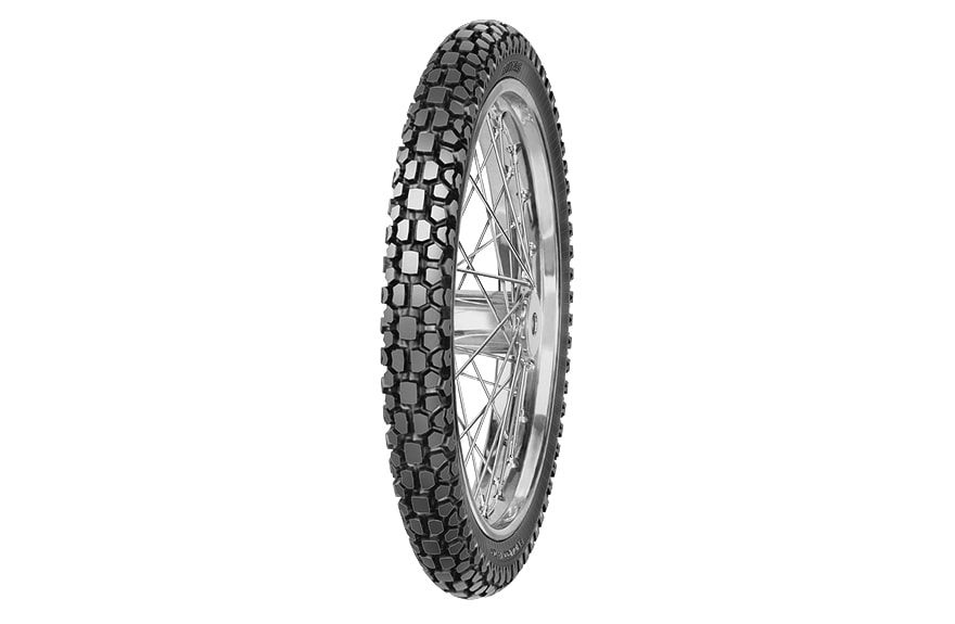 Mitas E-02 TOURIST ma wszechstronny bieżnik kostkowy. Zalecany w kombinacji z tyłem E-03.