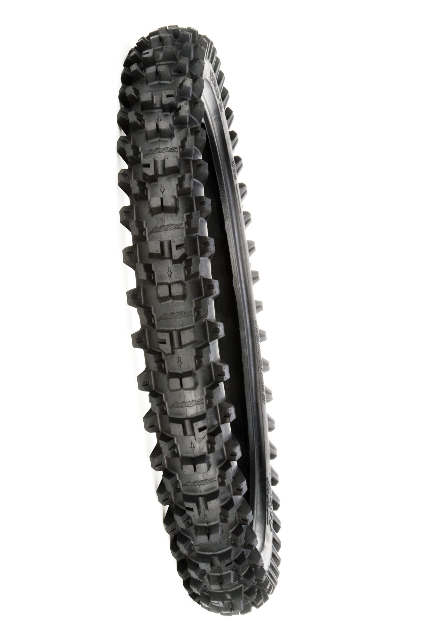 Opona na przód do lekkich motocykli MX. Kształt bieżnika zapewnia maksymalny napęd i pokonywanie zakrętów z dużą prędkością – w końcu wygrywanie startów i utrzymanie linii wewnętrznej często pozwala wygrać wyścig. Lekka konstrukcja Terrapactor I/T w połączeniu ze sztywnymi i elastycznymi strefami w osnowie pomaga utrzymać bieżnik na podłożu, zapewniając niesamowitą przyczepność na wyboistych koleinach. Wersja I/T (Intermediate Terrain), na średnio twardy teren.