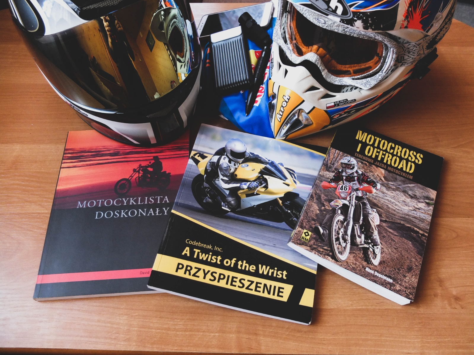 Książki „Motocyklista Doskonały” oraz jej uzupełniona część „Motocyklista Doskonały: Droga do Mistrzostwa” autorstwa Davida Hougha (wym. Hafa) są na polskim rynku już prawie 15 lat i według nas rzeczywiście są to, jak chwali je sam autor, książki, w których każdy motocyklista znajdzie coś dla siebie. Obie zapewniają solidną dawkę wiedzy nie tylko o pokonywaniu zakrętów. Opisują oczywiście kiedy dodawać gazu, jak pochylać motocykl, jak hamować i przypominają, by ćwiczyć hamowanie awaryjne – ale nie tylko! Znajdziemy także opisy: wpływu geometrii motocykla, rozkładu mas i profilu opony na jazdę, pokonywanie zakrętów, zasady jazdy w grupie oraz jazdy z dodatkowym bagażem i pasażerem. Użyteczną wiedzę stanowią opisy sytuacji niebezpiecznych, miejskich pułapek czyhających na użytkowników motocykli czy też porady dotyczące jazdy w upale, ulewie czy burzy. Książki są bardzo treściwe, przez co można do nich wracać wielokrotnie. Polecamy na długie zimowe wieczory.