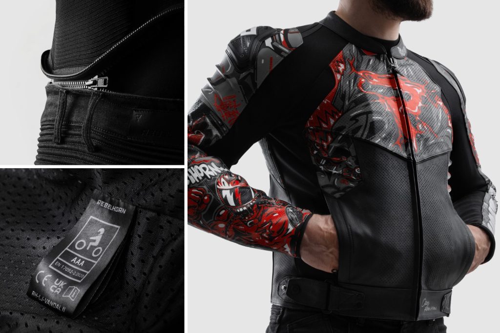 Kurtka Rebelhorn Vandal II została zaprojektowana przede wszystkim z myślą o jeździe drogowej. Nie posiada typowego dla kombinezonów garba aerodynamicznego, a jej krój lepiej pasuje do bardziej wyprostowanej pozycji za kierownicą. Model oferuje także praktyczne kieszenie: jedną wewnętrzną, wodoodporną na dokumenty oraz dwie zewnętrzne.