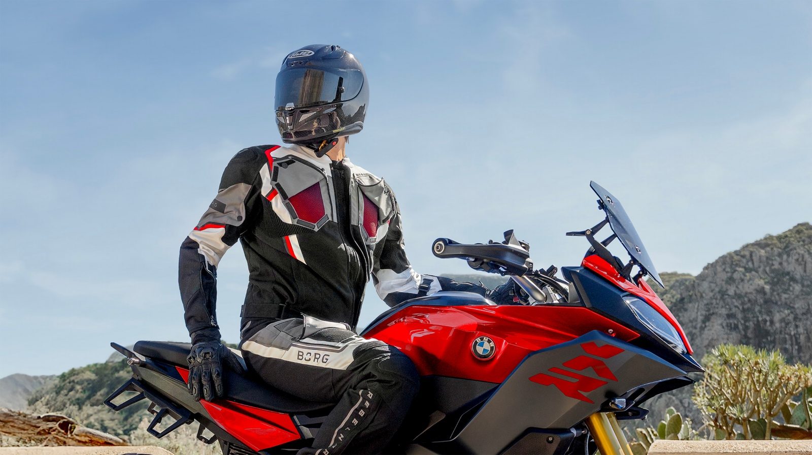 Współczesny strój motocyklowy ma nie tylko gwarantować wygodę, ciepło i komfort, ale przede wszystkim odpowiedni poziom bezpieczeństwa. Ubrania (nie tylko materiał, ale też szwy, zamki itp) są certyfikowane w trzech stopniach – A, AA, i AAA, co oznacza przejście odpowiednich testów symulujących wypadek. Dla najbardziej newralgicznych fragmentów ubioru jest to odpowiednio prędkości 45, 70 i 120 km/h. Spodnie i kurtka Rebelhorn Borg 2 spełniają wymagania klasy AA, co świadczy o dobrej ochronie, gdyż najwyższy poziom AAA spotykamy zazwyczaj w modelach wykonanych ze skóry. W miejscach najbardziej narażonych na przetarcie zastosowano wzmocnienia z materiału ripstop, a na kolanach i barkach umieszczono slidery znajdujące się pod zewnętrzną warstwą materiału.
