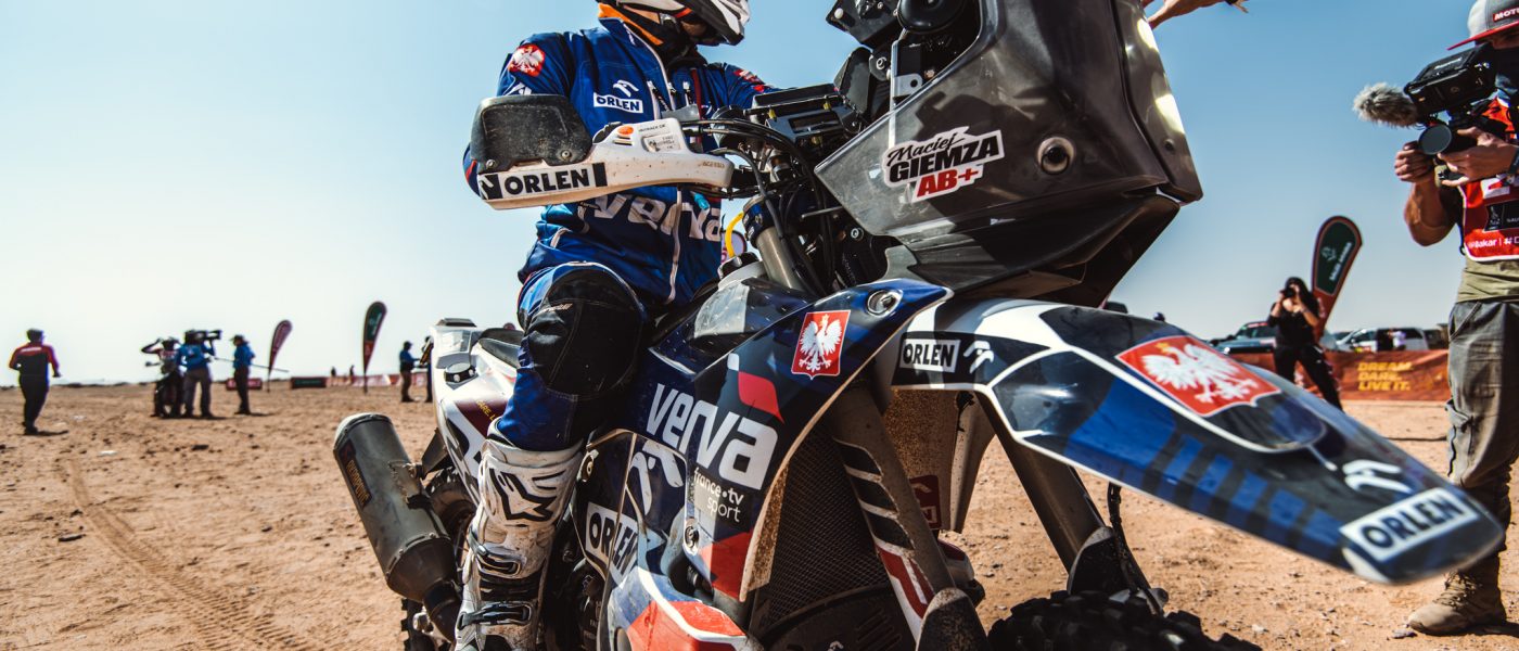 Jeśli nie znacie jeszcze motocyklistów ORLEN Team koniecznie powinniście ich poznać we wcześniejszym artykule. Tegoroczny rajd jest inny, ponieważ wszyscy zawodnicy otrzymują road book (mapę) na 20. minut przed startem. Nie mają więc czasu na ich opracowanie z zespołem dzień wcześniej. Pierwszy tydzień rajdu był bardzo wymagający nie tylko nawigacyjnie. Zawodnicy pokonywali zupełnie nieznane tereny, które nie tylko były momentami trudne technicznie, ale i wymagające ogromnej uwagi. Na relacji Macieja Giemzy widzieliśmy kolce z krzewów, które przebijały plastiki w jego motocyklu! Motocykliści mieli pokaleczone ręce i jeszcze przez kilka dni usuwali małe kolce z przedramion. Nie powstrzymało to jednak zawodnika ORLEN Team przed bardzo dobrą jazdą.