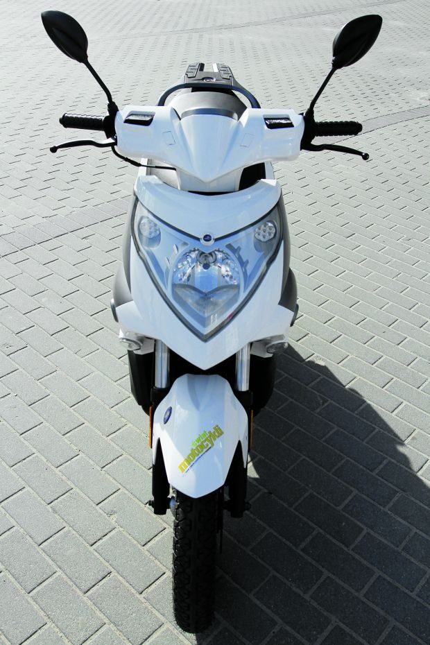 Dwusuwowy, chłodzony powietrzem silniczek generuje 4,3 KM. Niby niewiele, ale w ruchu miejsko-podmiejskim powinno zagwarantować przyzwoitą dynamikę. Gdy rzuciłem się w wir miejskiego ruchu, nie błysnął nie wiadomo jakimi przyspieszeniami, jednak jak na motorower radził sobie dosyć żwawo.