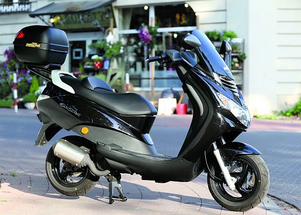 Nietrudno domyślić się, że ten model Peugeota występuje również w wersjach motocyklowych: Elystara mogą napędzać czterosuwowe silniki o pojemności 125 i 150 ccm. Jednak testowy skuter porusza się dzięki dwusuwowi o motorowerowej pojemności 50 ccm. Może nim jeździć pełnoletni obywatel bez motocyklowego prawa jazdy.