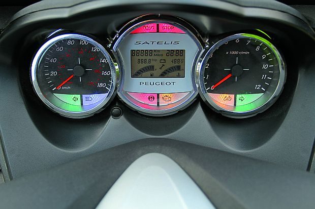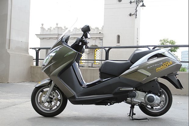 Wrażenia z jazdy Satelisem w ruchu miejskim są podobne do tych, jakie wiążą się z prowadzeniem małego skuterka miejskiego, a nie maksiskutera. Jest bardzo zwinny i zwrotny, wąski, więc sprawnie przeciska się w korku. Jego waga też utrzymuje się na rozsądnym poziomie, więc nawet wątła skuterzystka da sobie z nim radę.